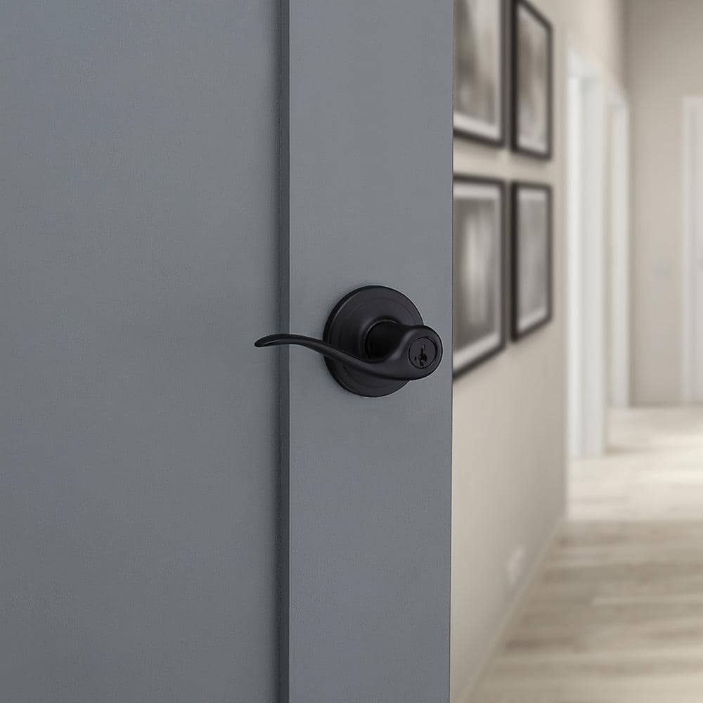 Kwikset Tustin Matte Black Keyed Entry Door Handle Featuring SmartKey Security with Microban Antimicrobial Technology