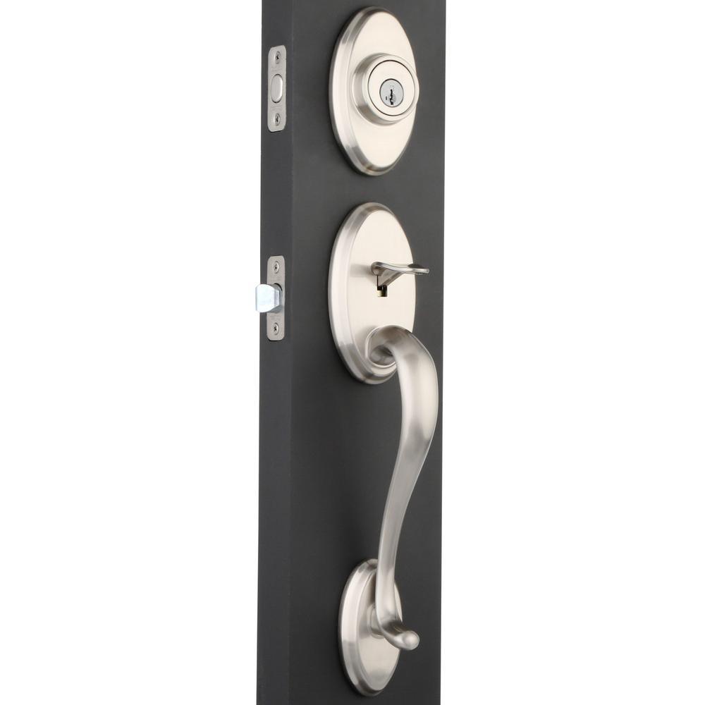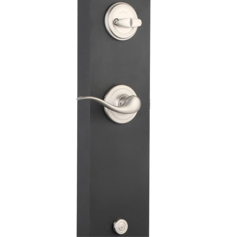 Shelburne Satin Nickel Single Cylinder Door Handleset with Tustin Door Lever Featuring SmartKey Security