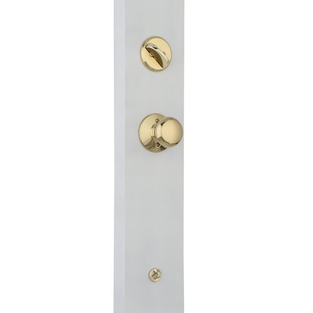 The Schlage Plymouth Bright Brass Single Cylinder Deadbolt with Knob Door Handleset is perfect for use on exterior front doors. The charming Plymouth knob is clean and adaptable, while the Plymouth handleset features an oval shape and straightforward design. When finished in Bright Brass, the handleset takes on a warm golden sheen that adds a vintage appeal. Plus, it’s been designed and tested with strength and durability in mind.