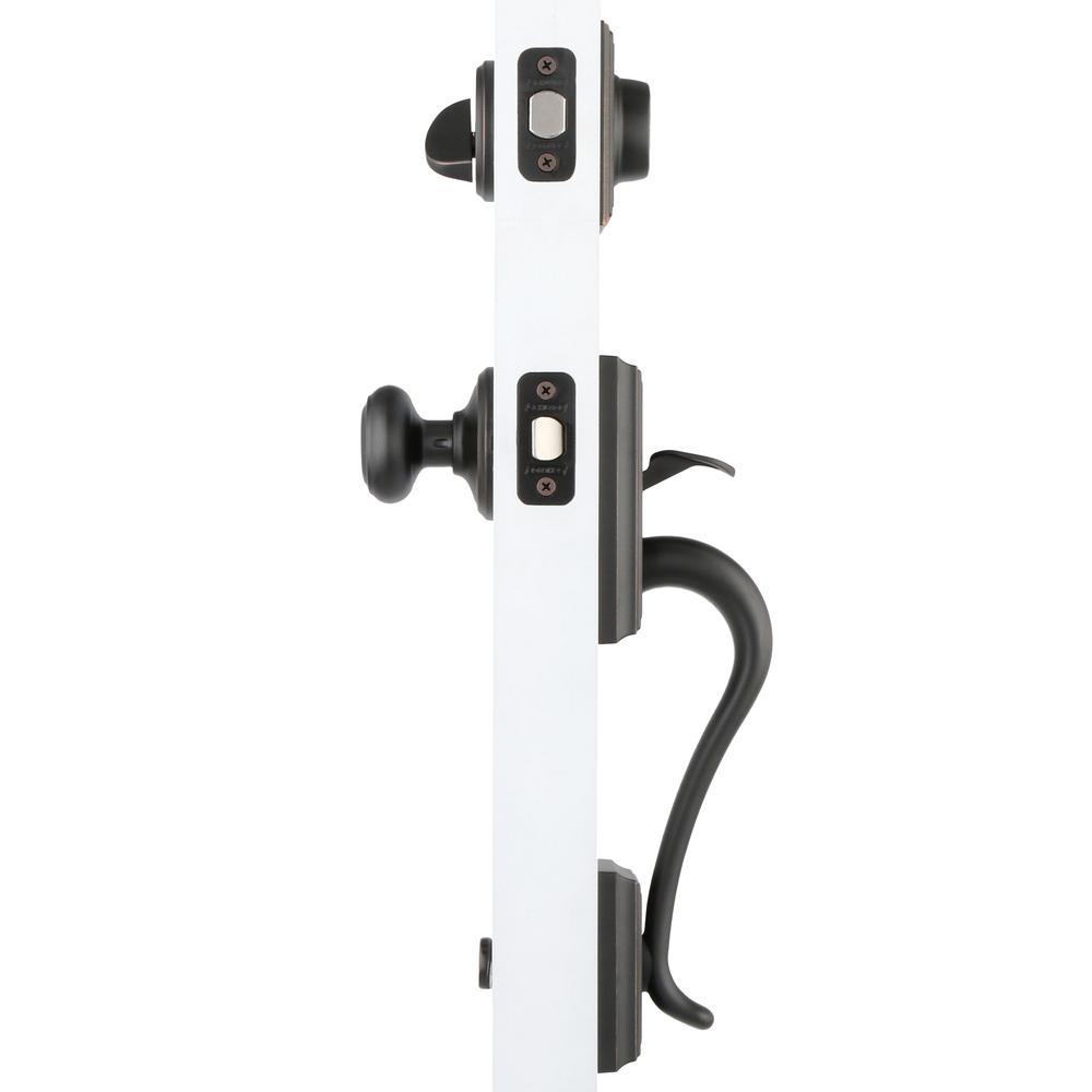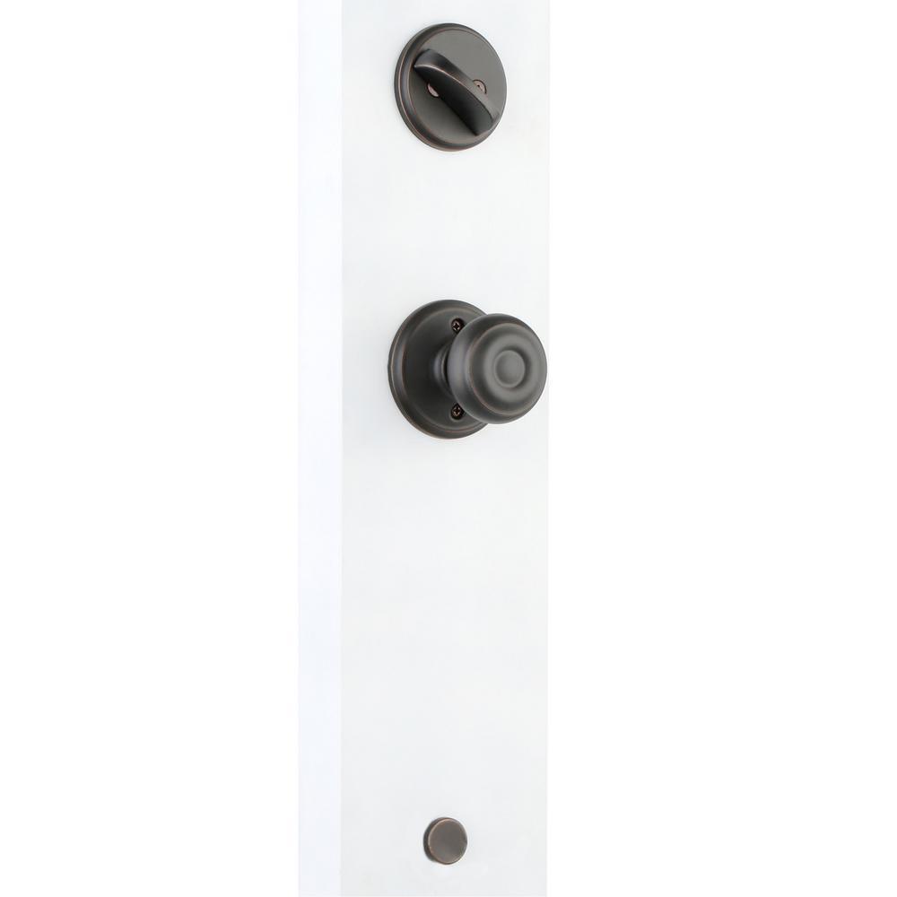 The Schlage Addison Aged Bronze Single Cylinder Deadbolt with Georgian Knob Door Handleset is perfect for use on exterior front doors. The modest Georgian knob features symmetrical detailing throughout, while the Addison handleset's distinguished look incorporates subtle details without losing its classic simplicity. Our Aged Bronze finish is inspired by traditional design, featuring warm, copper tones that break through its darker, aged exterior. Plus, it's been designed and tested with strength and durability in mind.