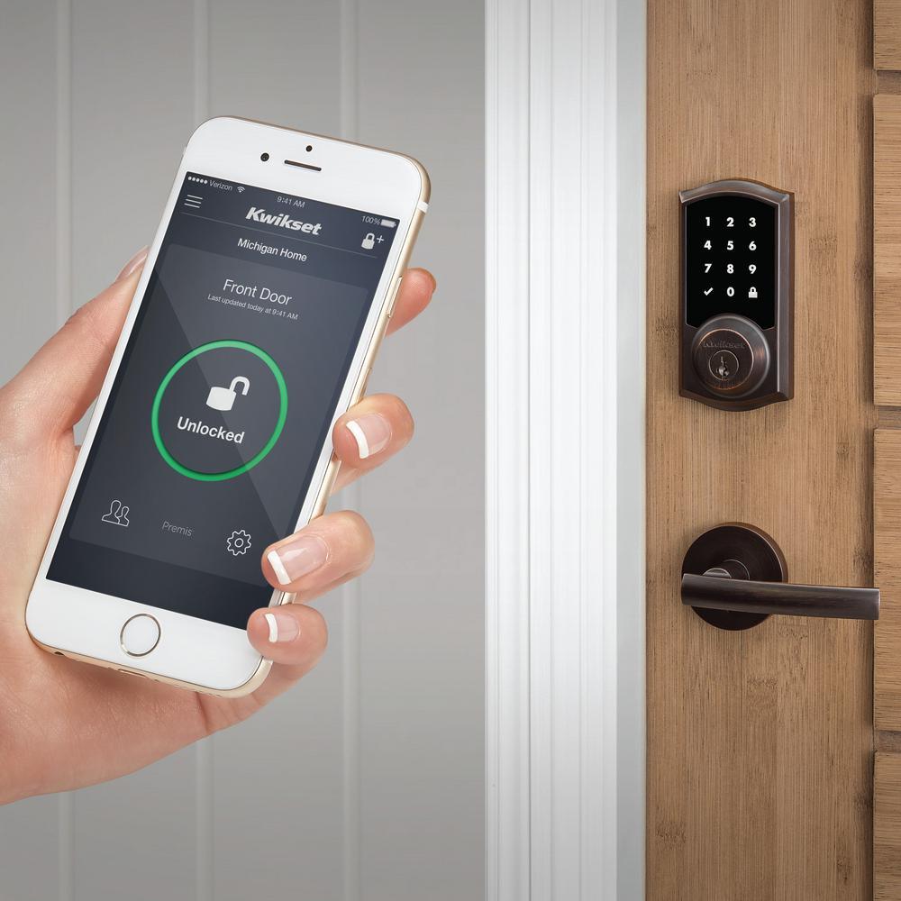 Kwikset Premis is a HomeKit-enabled touchscreen smart lock offering secure keyless entry and classic styling. This single-cylinder electronic lock pairs with the Avalon handleset and Tustin lever, delivering convenient access via personalized codes, Siri voice commands, or the Premis app.