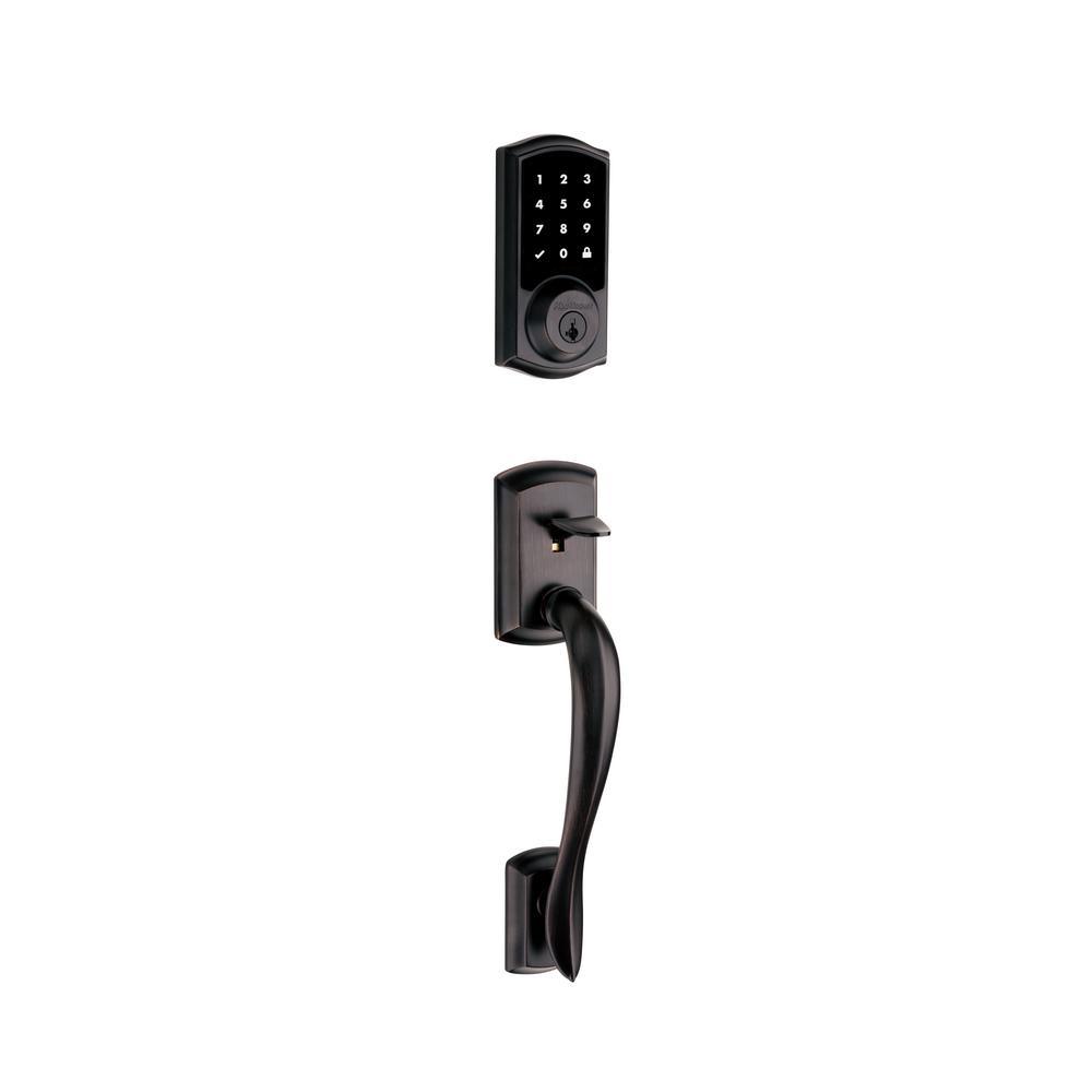 Premis Touchscreen Smart Lock Single Cylinder Venetian Bronze Electronic with Avalon Handleset and Tustin Lever