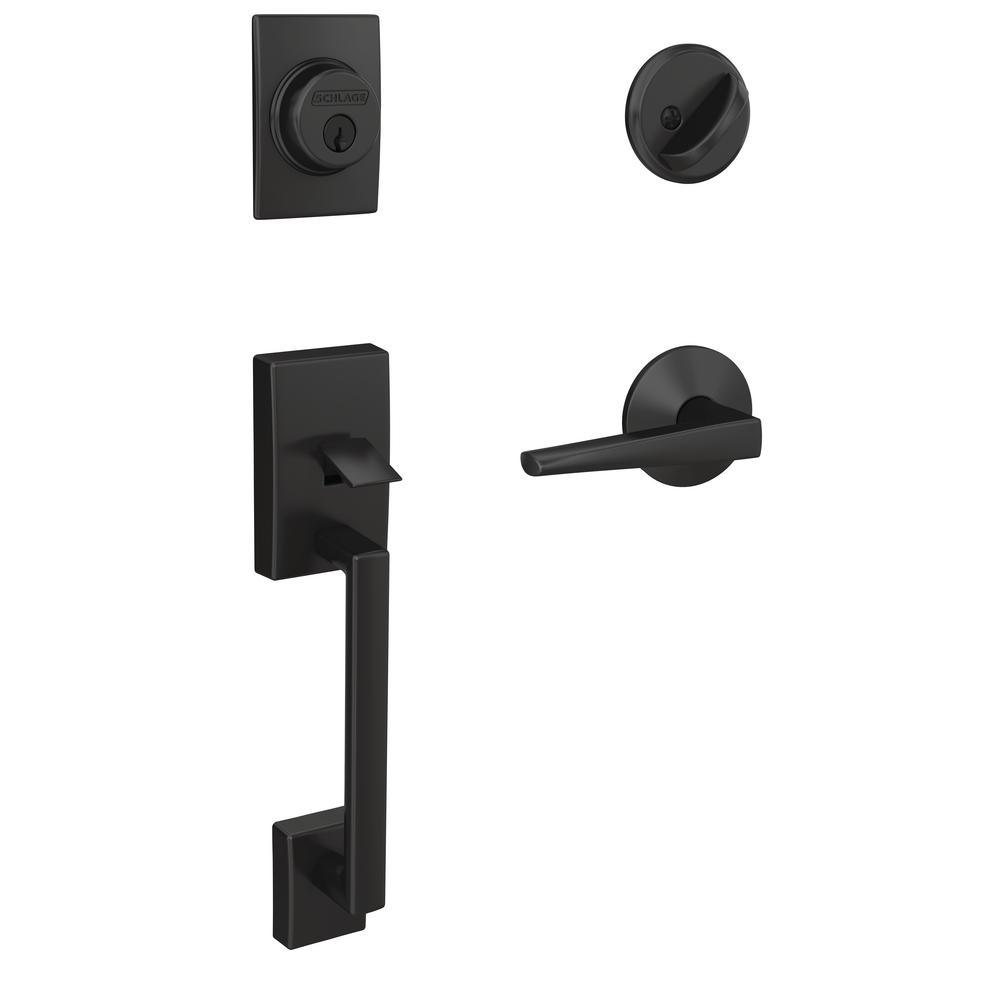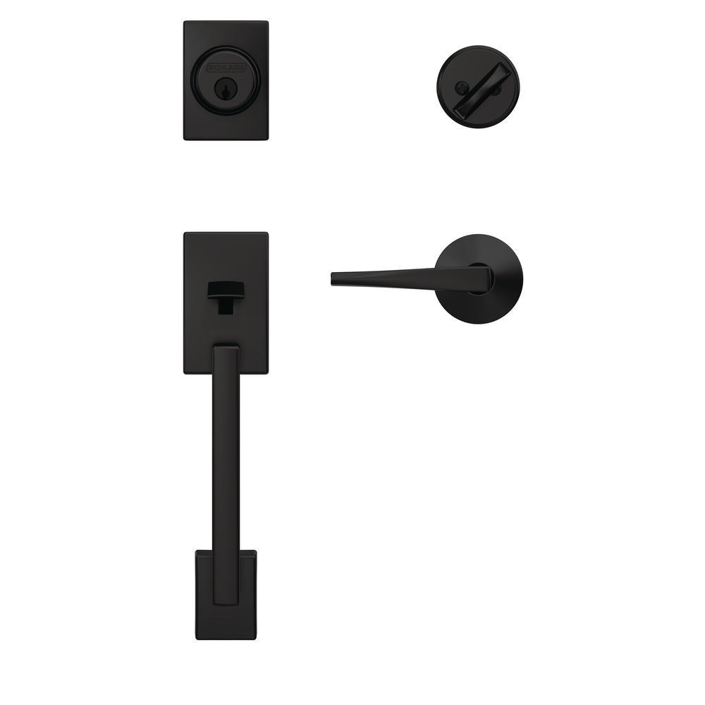 The ultimate in entryway style, the Schlage Custom Century Single Cylinder Handle set and Interior Eller Lever with Kinsler Trim in Matte Black makes your front door unforgettable. Low profile interior trim creates a high-style designer look. The intrepid style of the Eller lever pairs the soft curves of Scandinavian design with the precise, clean surfaces of minimalism, while the Century grip is chic with a delicate, slightly curved shape. The striking appearance of the Matte Black finish creates an elegant look that's sure to be noticed in any style setting. Coordinate the style and finish of your homes door hardware inside and out by pairing with Schlage Custom interior door hardware.