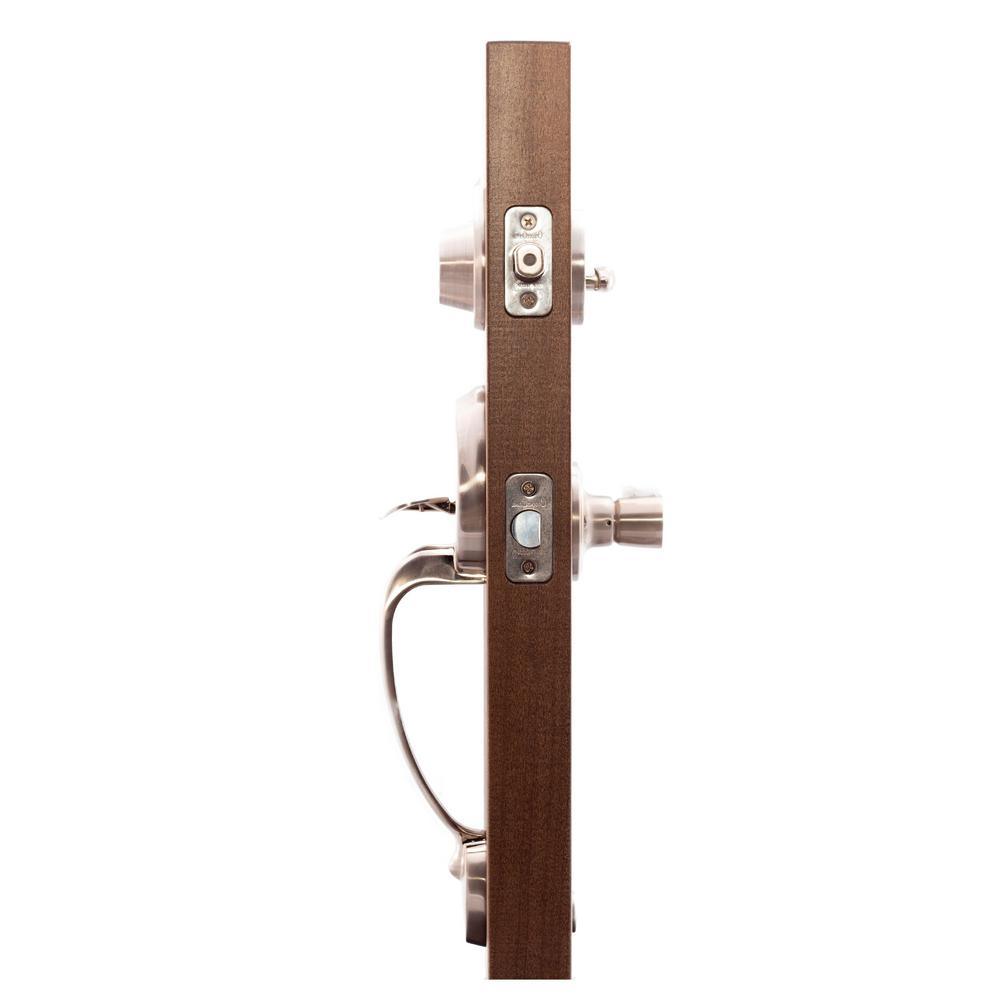 Whether you are remodeling your home or whether you plan to build a new home, this timeless mid-century style front door handle set with left hand Scandinavian lever interior trim provides the perfect balance between style sophistication and state-of-the-art security. This satin stainless finish is attractive, resistant to smudging and offers outstanding durability. These locksets are designed to fit most residential doors and meet the uncompromising grading standards of the ANSI for residential and builders hardware.