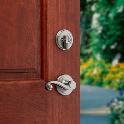 Kwikset Arlington Satin Nickel Smartkey Single-Cylinder Deadbolt Keyed Entry Door Handleset Lido