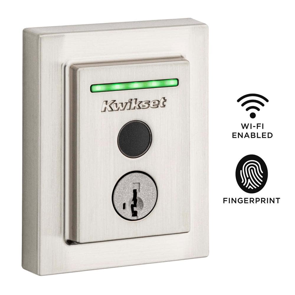 Secure your entry with Kwikset’s HALO Touch, a Wi‑Fi enabled fingerprint smart deadbolt paired with the modern San Clemente handleset. Built-in Wi‑Fi requires no hub and SmartKey Security lets you re-key in seconds, all in a crisp Satin Nickel finish.