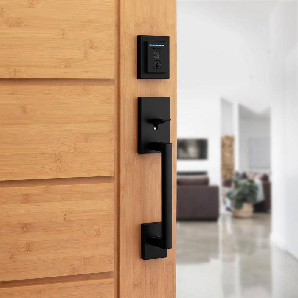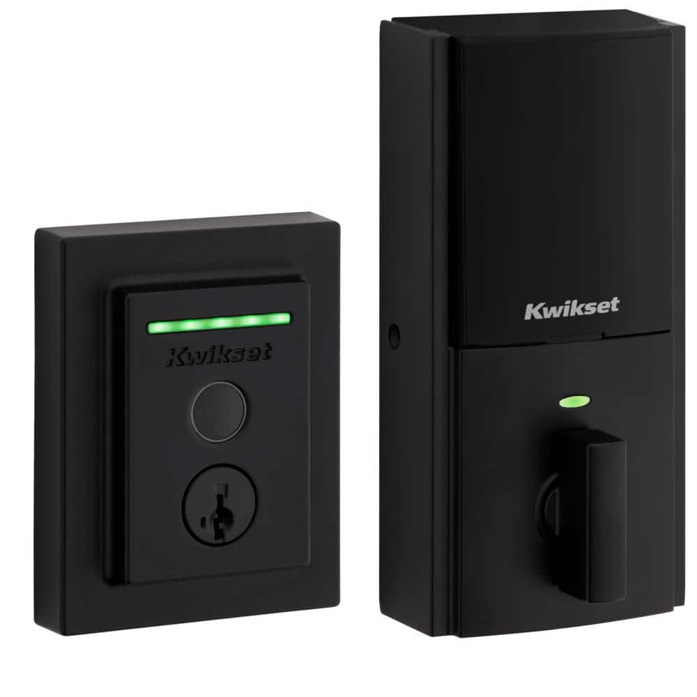 Kwikset Halo Touch Matte Black Fingerprint Wi‑Fi Electronic Smart Lock Deadbolt with SmartKey Security & San Clemente Handleset