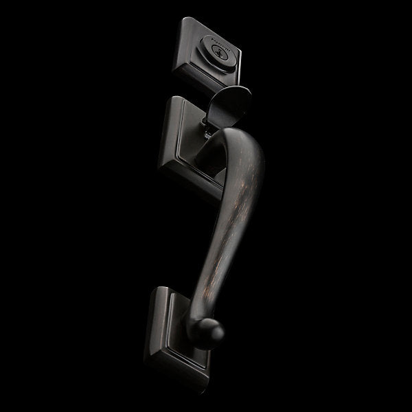 The Pistoria handleset sweeps in a graceful curve, its Venetian Bronze finish layering warmth and subtle sheen against natural woods and painted doors alike. The square rosettes ground the form, while the Madrina lever adds a tailored flourish. Pair it with forged house numbers and a paneled door for elevated curb appeal. It’s a refined finishing touch that whispers luxury every time you come home.