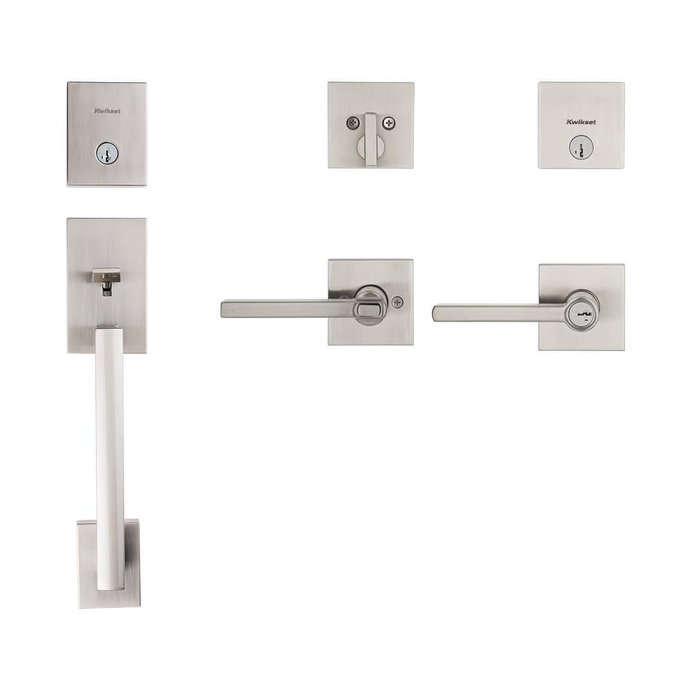 Kwikset San Clemente Satin Nickel Entry Handleset with Halifax Keyed Entry Door Handle Combo Pack
