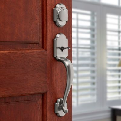 Kwikset Austin Venetian Bronze Single Cylinder Door Handleset with Austin Entry Door Lever Featuring SmartKey Security