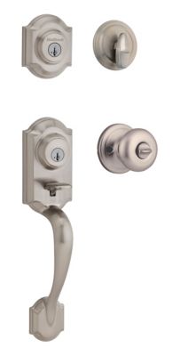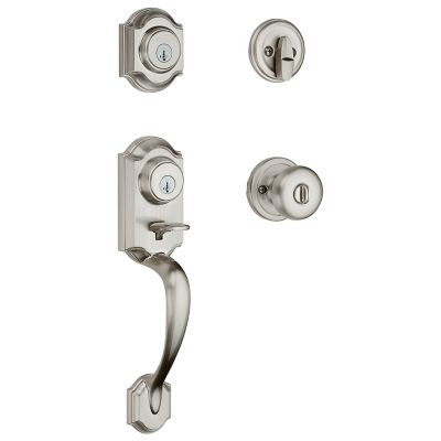 A robust exterior door handleset from Kwikset’s Signature Series, pairing the Montara grip with a Juno entry knob and single-cylinder deadbolt. Features SmartKey Security for fast re-keying and protection against advanced break-in techniques, plus adjustable installation to fit standard doors.