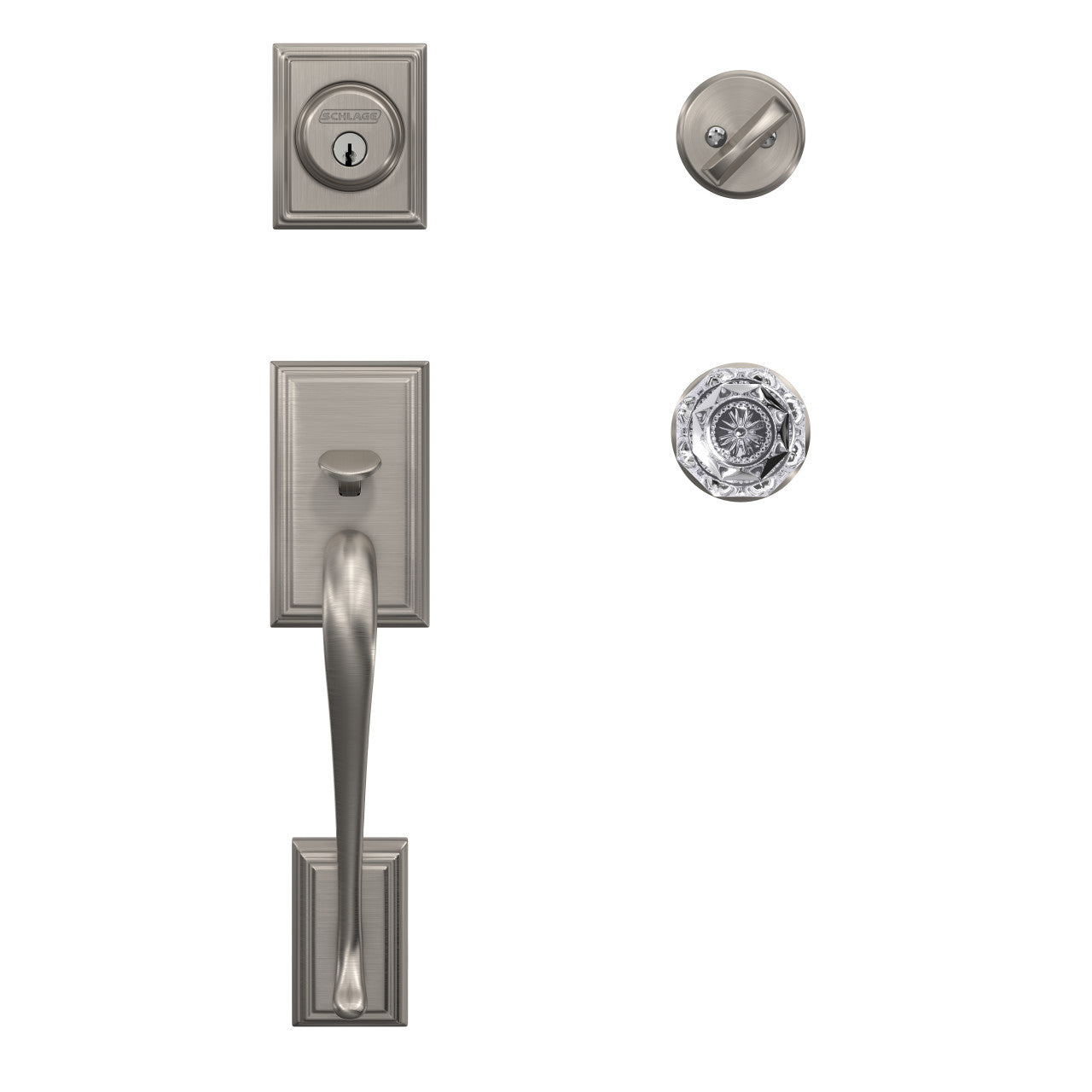 Elevate your entry with the Schlage Custom Addison single cylinder handleset paired with the sparkling Alexandria glass knob. Built from premium metal with Grade AAA BHMA certification, it blends security, durability, and designer detail for a refined front door upgrade.