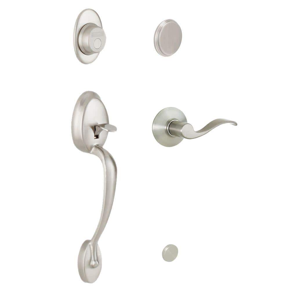 The Plymouth handleset draws a graceful silhouette that instantly elevates a front door with refined simplicity. Its softly arched grip and flowing Accent lever feel sculptural, catching light in a luxe satin nickel sheen. Pair it with crisp white millwork or a moody painted door to let the hardware gleam as jewelry for the entry. This is the finishing touch that signals polished, inviting, everyday luxury.