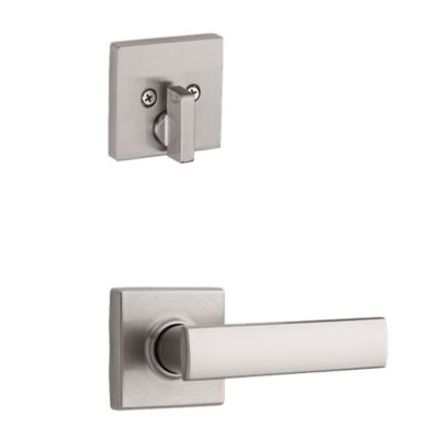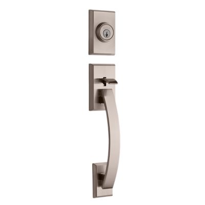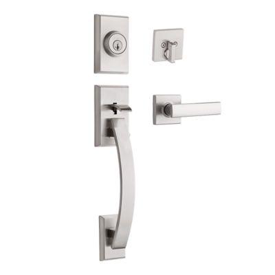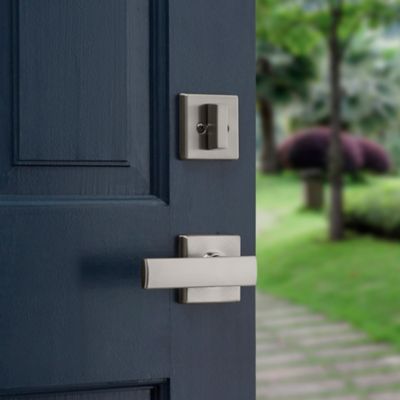 A contemporary satin nickel entry handleset combining Tavaris’ bold profile with the Vedani interior lever. Features SmartKey Security for fast DIY re-keying and Grade 1 certified deadbolt performance for strong, reliable protection.
