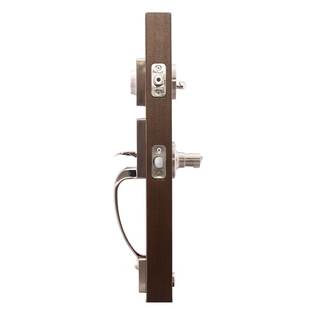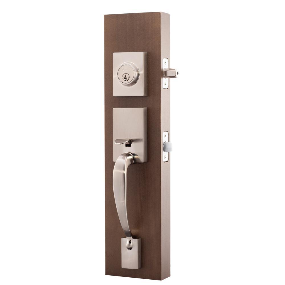 Whether you are remodeling your home or whether you plan to build a new home, this timeless craftsman style front door handle set with left hand Scandinavian lever interior trim provides the perfect balance between style sophistication and state-of-the-art security. This satin stainless finish is attractive, resistant to smudging and offers outstanding durability. These locksets are designed to fit most residential doors and meet the uncompromising grading standards of the ANSI for residential and builders hardware.