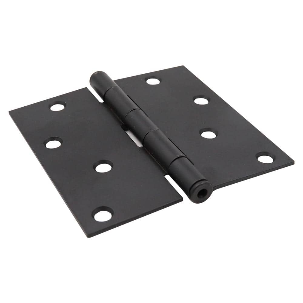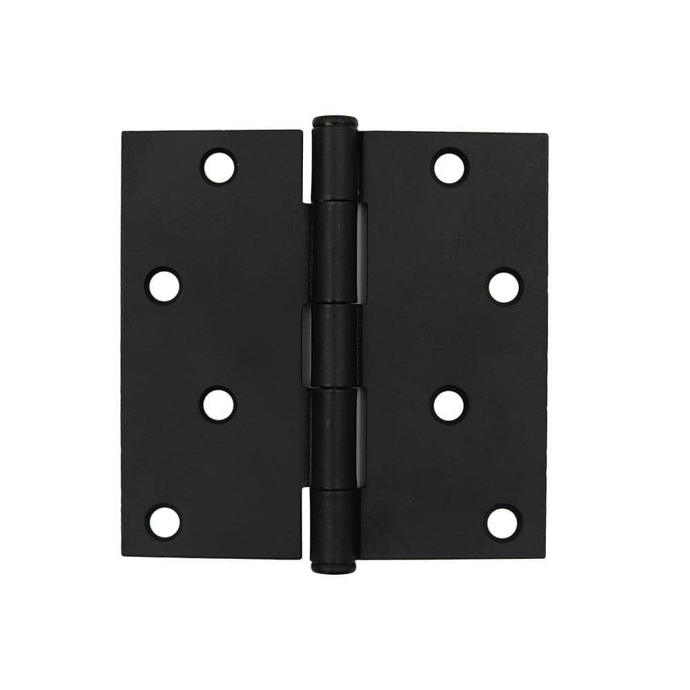 These Everbilt 4 in. square-corner door hinges feature a removable pin for easy installation or door removal. Built from durable steel with a matte black finish and lubricated knuckles for smooth, quiet operation, each pack includes mounting screws.