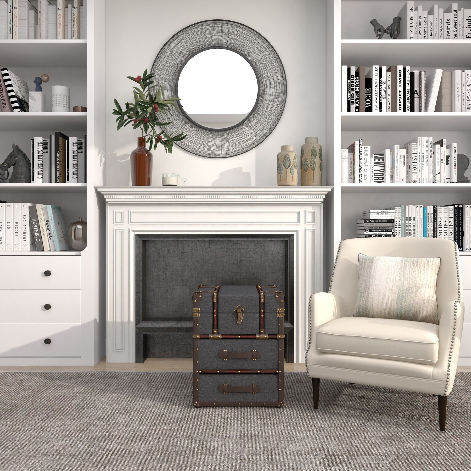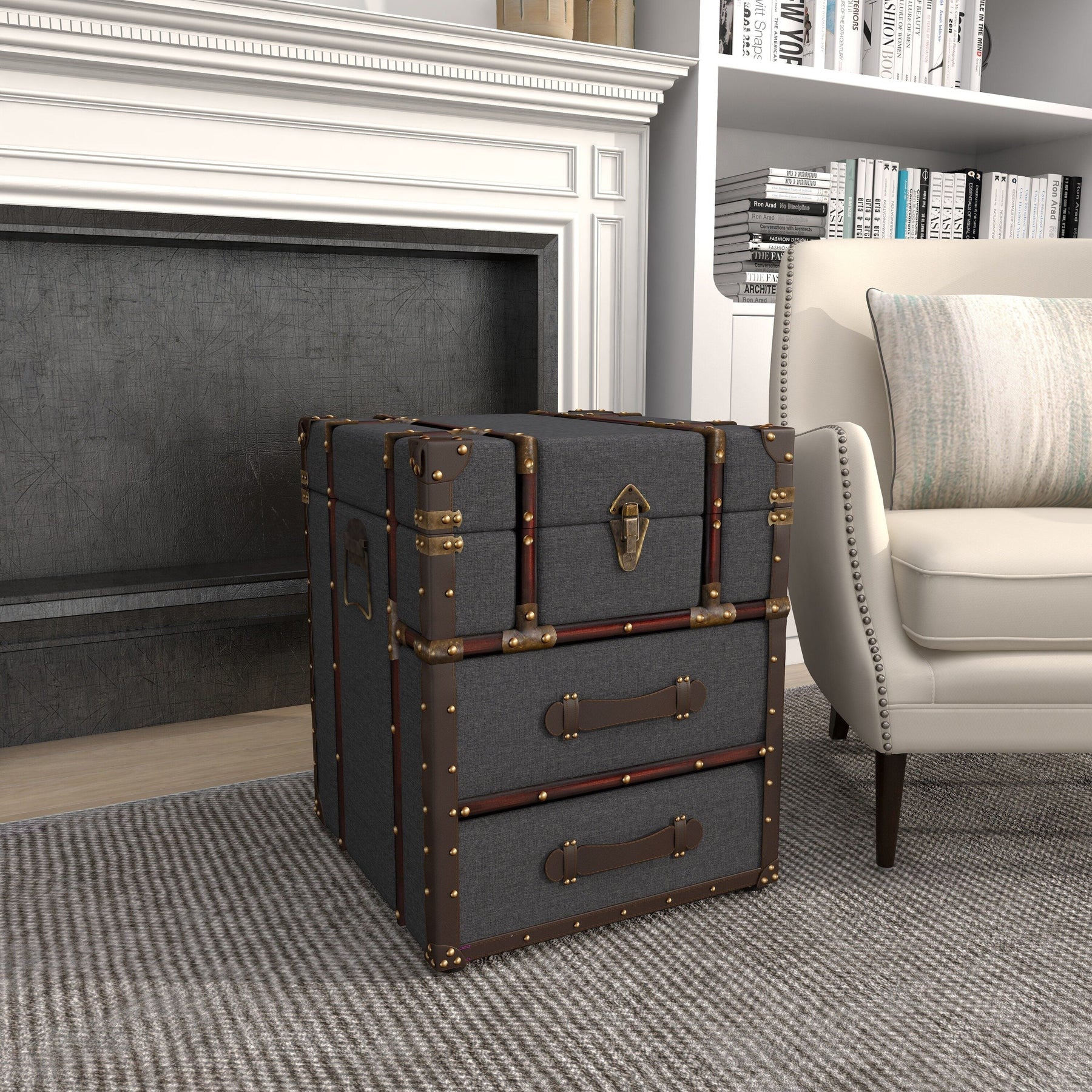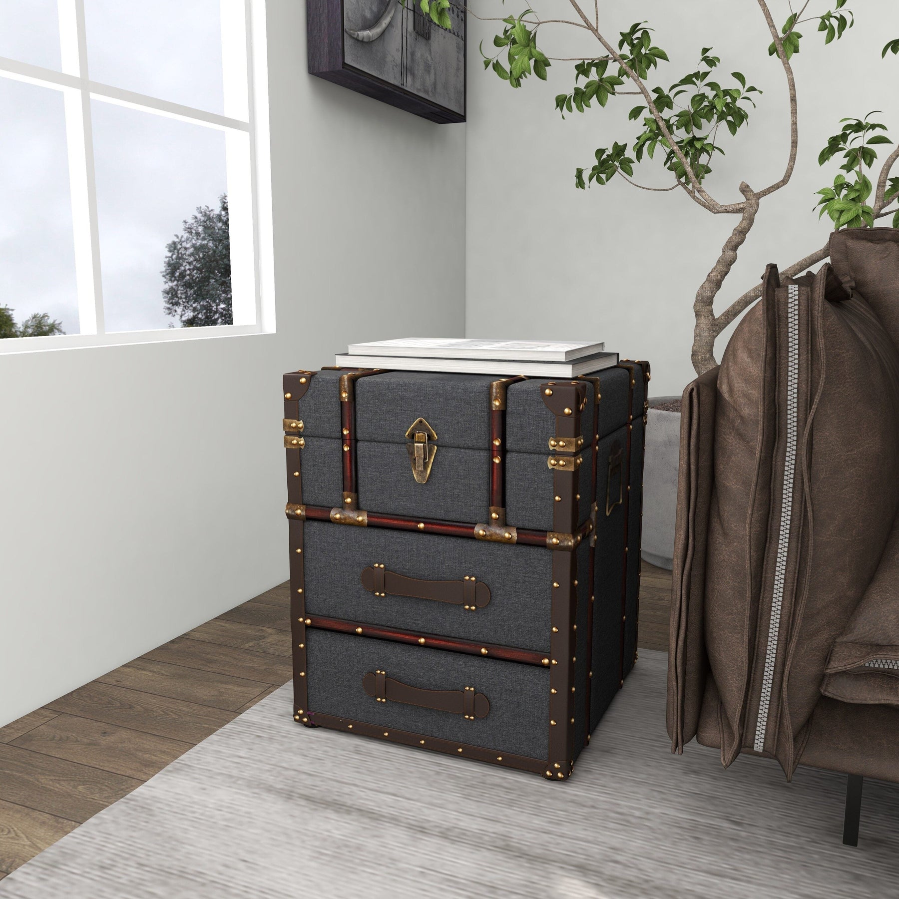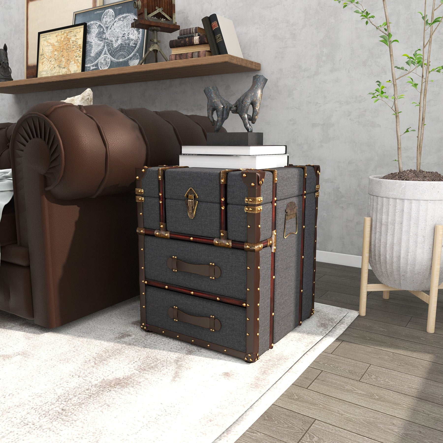 • Design: Showcases a vintage-inspired chest look with bolted straps, rivet details, and an antique finish hardware to add a classic touch.