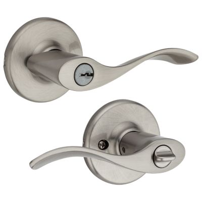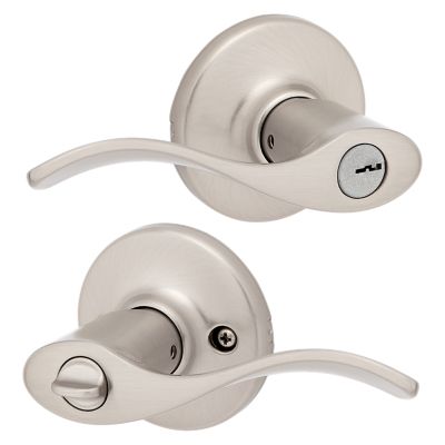 Secure your exterior door with the Kwikset Balboa keyed entry lever in satin nickel. Featuring Microban antimicrobial protection, an adjustable latch, and reversible handling, it installs quickly and delivers dependable Grade 3 security.