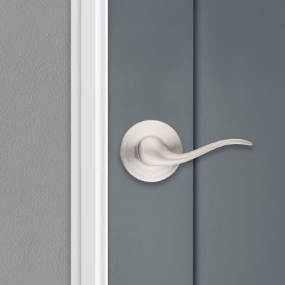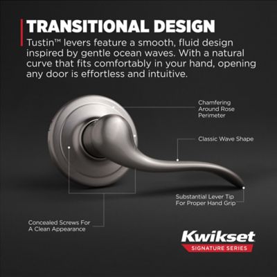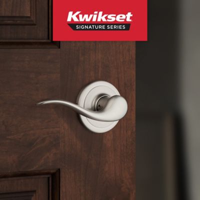 A sleek, reversible hall/closet lever from Kwikset’s Signature Series, finished in satin nickel and protected by Microban antimicrobial technology. It installs easily with an adjustable latch to fit standard doors and delivers smooth, wobble-free operation with all‑metal construction.