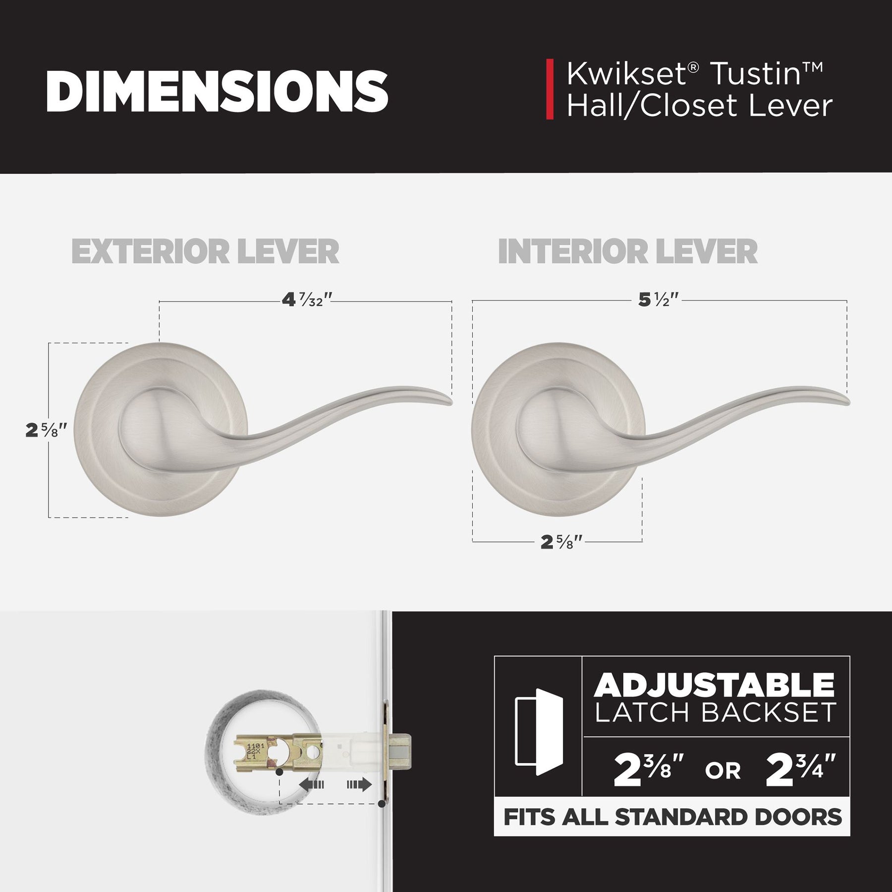 • Easy Installation: Installs in minutes with just a screwdriver; adjustable backset 2-3/8" or 2-3/4"