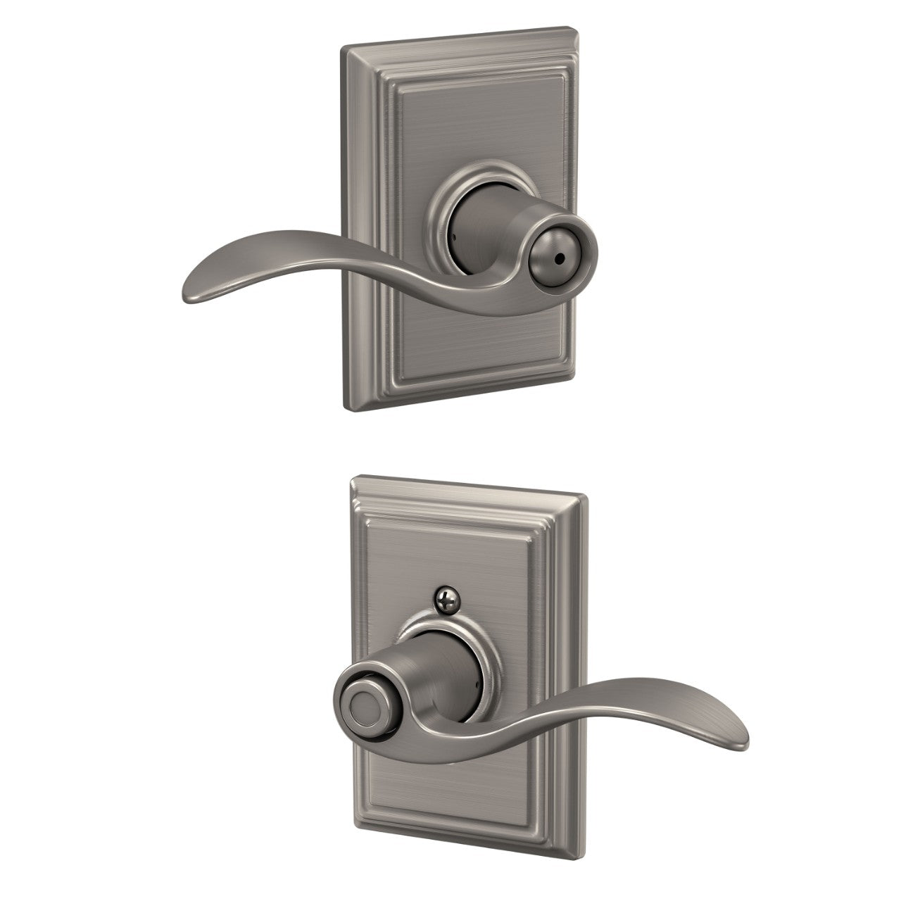 A stylish privacy lever for bedrooms and baths, the Schlage Accent with Addison trim delivers dependable locking with a push-button mechanism. Built from premium metal and certified Grade AAA for security, durability, and finish, it fits standard doors for a quick upgrade.