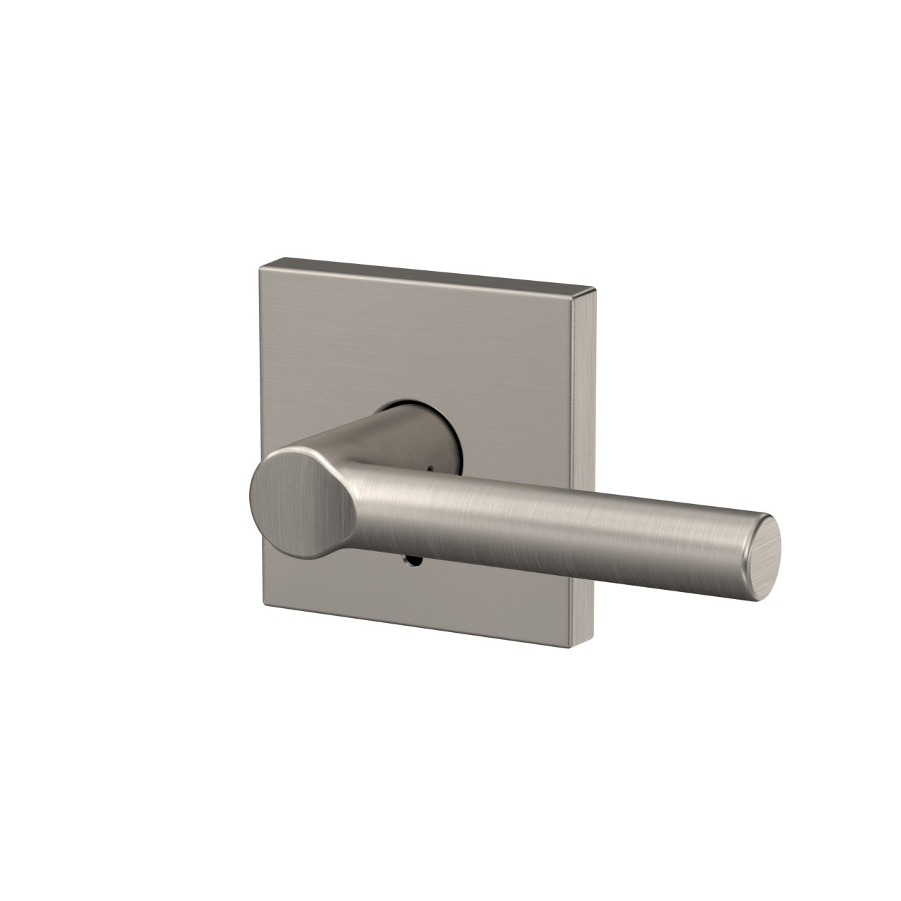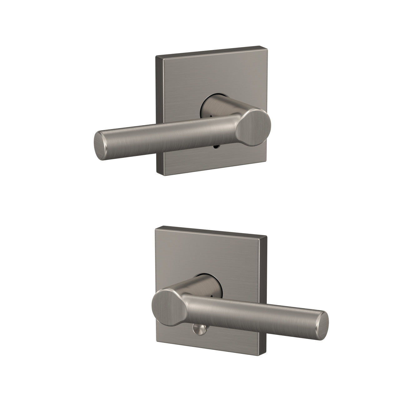 Schlage’s Custom Broadway lever with Collins trim is a 2‑in‑1 interior lock that converts between passage and privacy in minutes. Featuring low‑profile square trim with concealed screws, it brings a modern, designer look to bedrooms, bathrooms, halls, and closets.