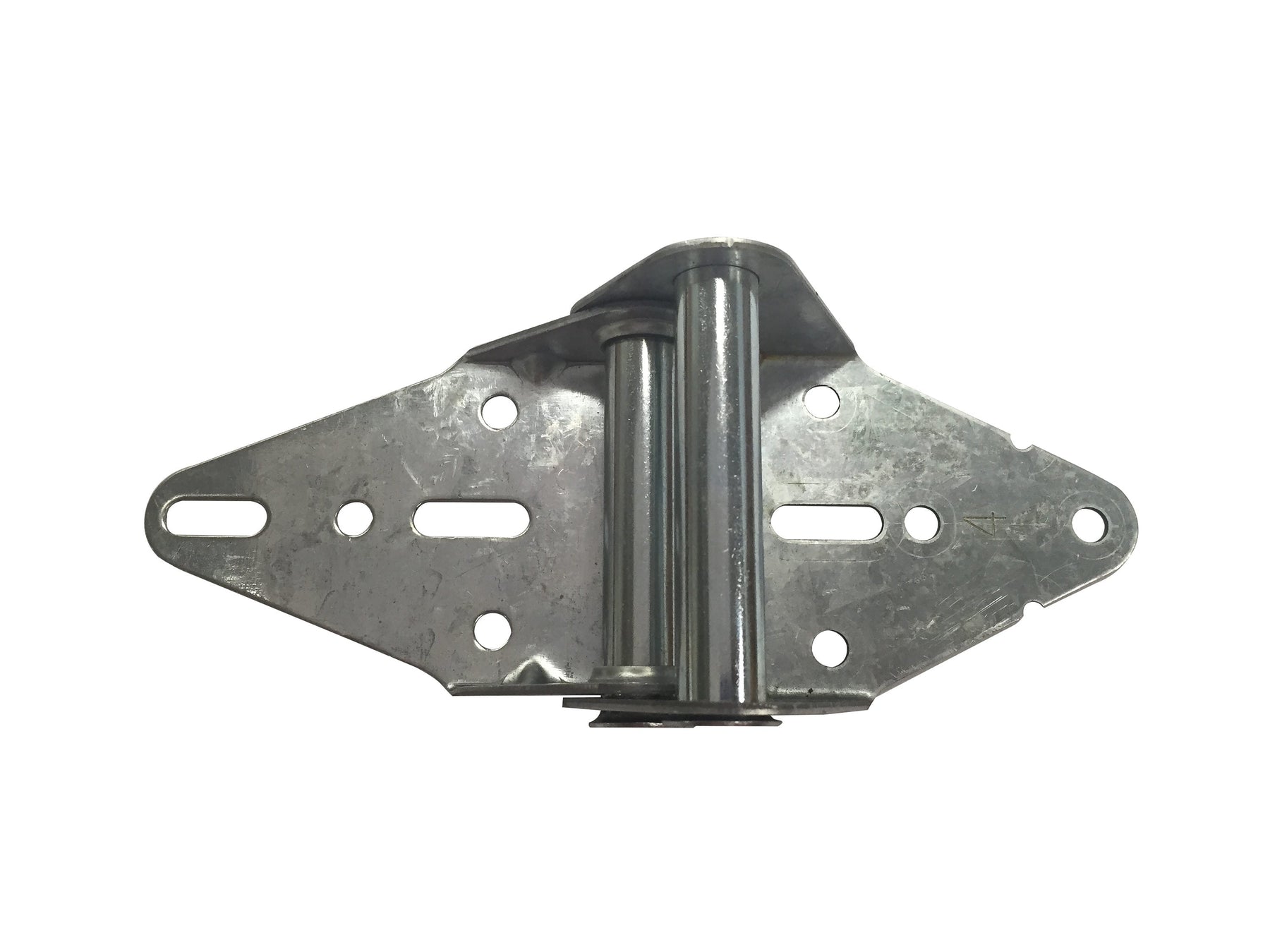 Universal #4 hinge for sectional residential garage doors, constructed from zinc-plated steel for durability. Designed to connect the 4th and 5th door panels and includes mounting hardware for straightforward replacement.