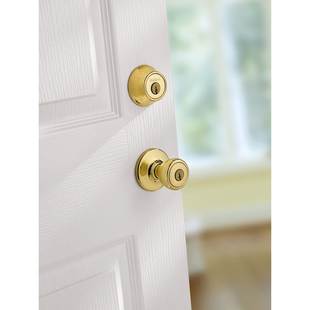 As the industry leader, Kwikset has provided trusted security for over 60 years and has become synonymous with security, peace of mind, style and innovation. The classic design of Tylo is at home in any decor. Its style lends a graceful finish to any door. The Polished Brass finish adds to the traditional look and feel of the product and makes a classic statement. The Combo pack provides two locking points-keyed entry and a deadbolt.