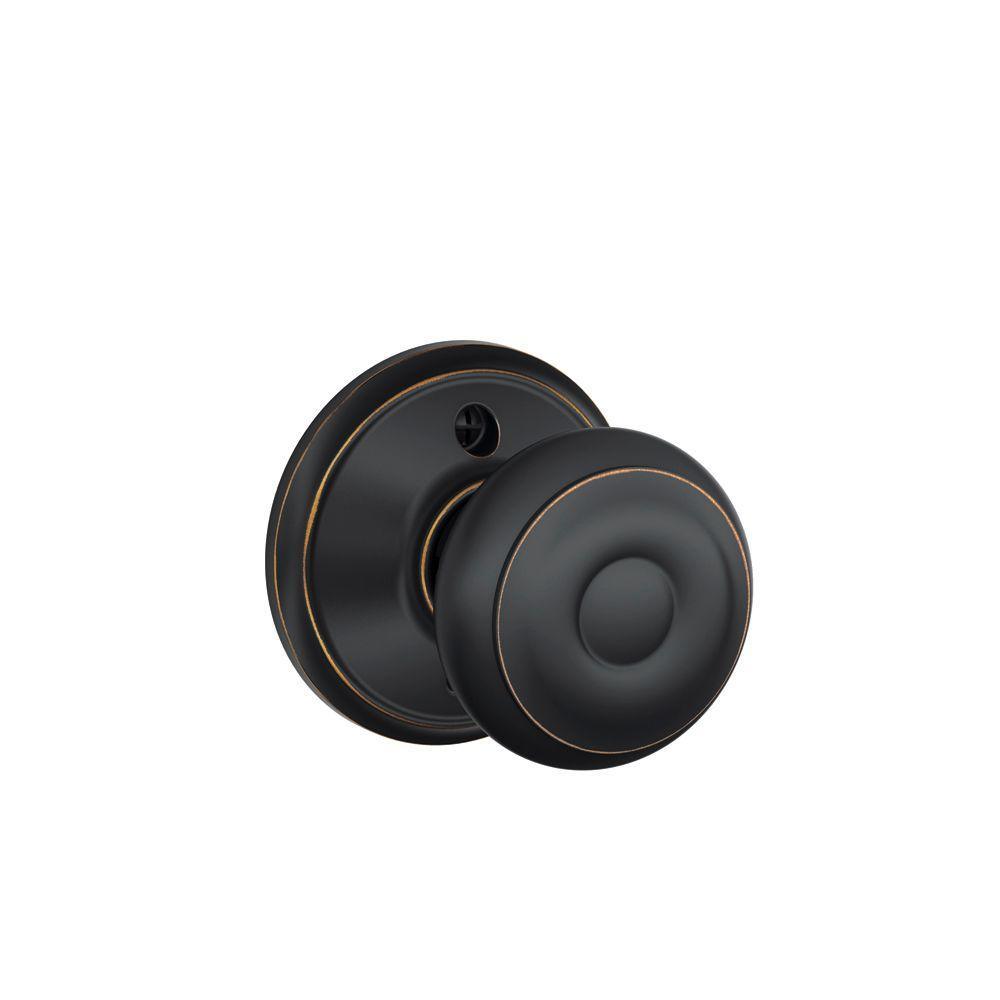 The Schlage Georgian Aged Bronze Dummy Door Knob doesn’t turn and is commonly used as a decorative pull for doors that don’t require latching. The knob’s design is inspired by Georgian-style homes in New England, exuding a certain understated elegance. Its symmetrical detailing is highlighted by our Aged Bronze finish featuring warm, copper tones that break through its darker, aged exterior. Plus, it’s designed and tested with strength and durability in mind, protected by a lifetime limited warranty for decades of dependable use.