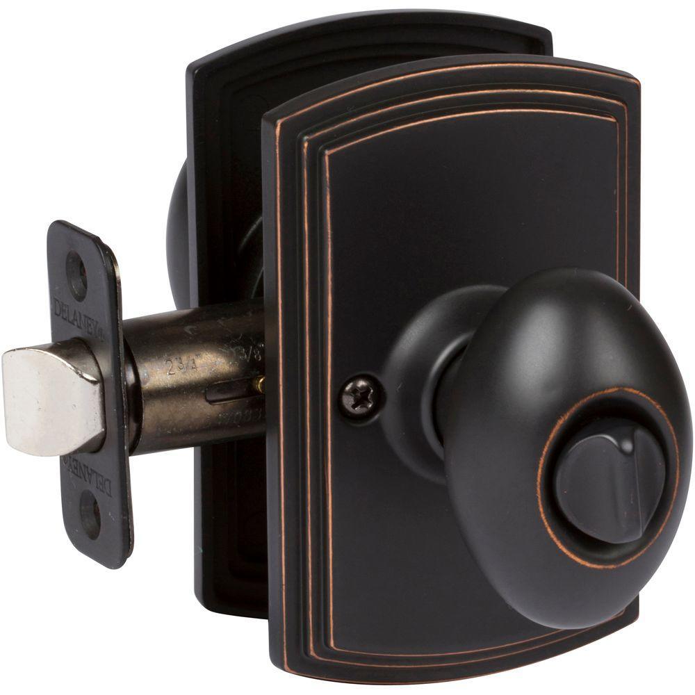 The Delaney Designer Series Italian Collection was inspired by the simple elegance of Venice and the timeless appearance found in Tuscany. The Canova unique egg shaped knob and enlarged back plate adds value and style to any home. The black finish complements a wide selection of interior design styles including Craftsman, Country and Mountain. This privacy knob is for use on bathroom and bedroom doors requiring a locking function with a thumb turn on the inside. There is an emergency release on the outside with a provided pin. Store the emergency pin on the trim above the door on the outside.