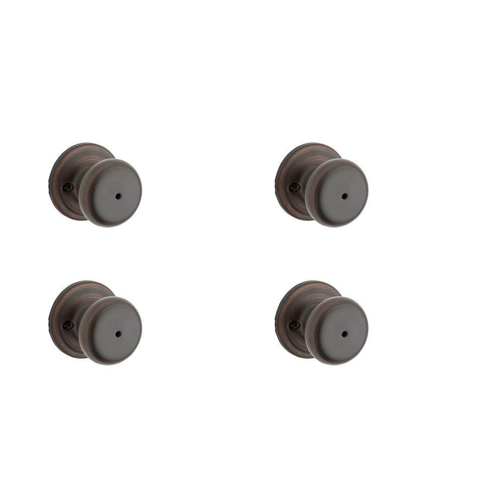 Step up to designer styles and superior security with Kwikset Signature Series products. Juno's elegant, traditional style blends perfectly with most design styles. This privacy knob/lever is best used in interior bed and bath applications where privacy is required. Both knobs/levers are locked or unlocked by turn button inside. The outside knob/lever can be unlocked by an emergency key. The venetian bronze finish is hand-rubbed to reveal unique bronze highlights and provides a rich and warm complement to the product's style.