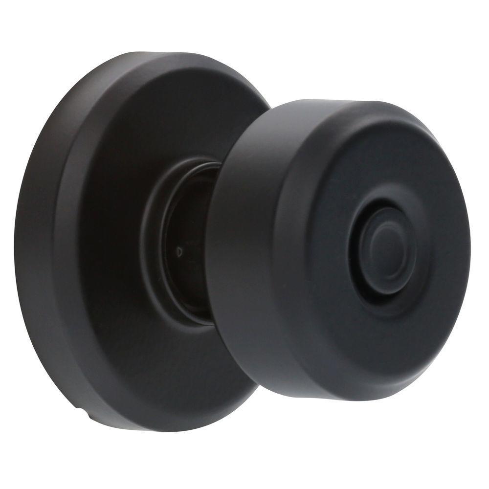 Bowery Matte Black Privacy Bed/Bath Door Knob with Greyson Trim