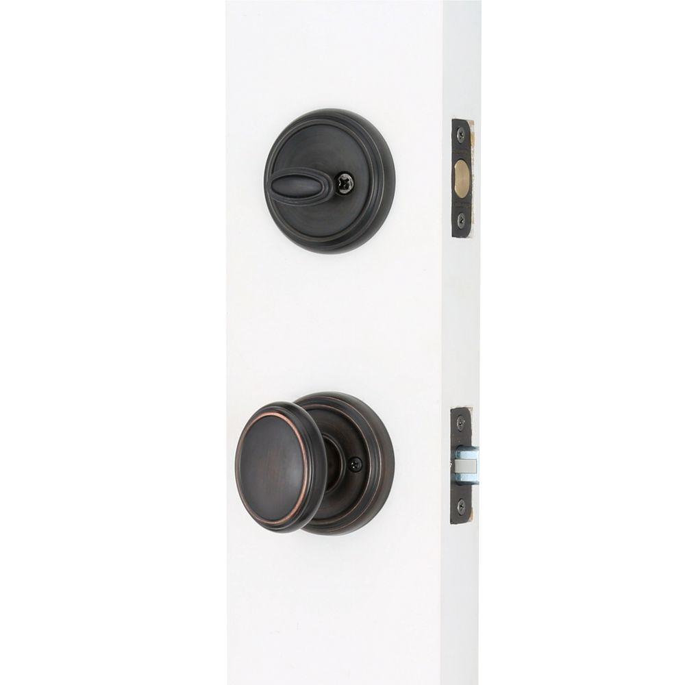 Prestige Bighorn Single Cylinder Venetian Bronze Door Handleset with Carnaby Door Knob Featuring SmartKey Security