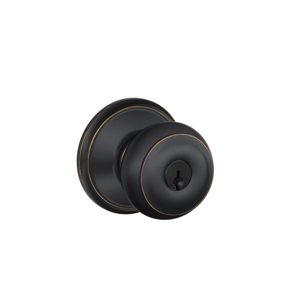 Schlage Georgian Aged Bronze Keyed Entry Door Knob, 2-Pack