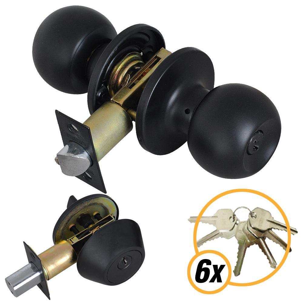 Black Entry Door Knob Combo Lock Set with Deadbolt and 6 Keys
