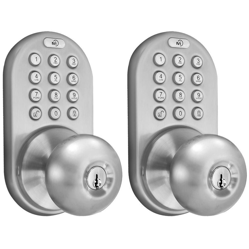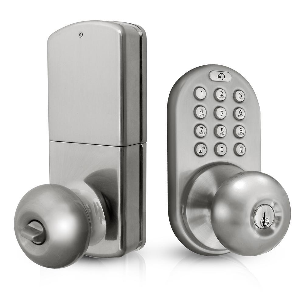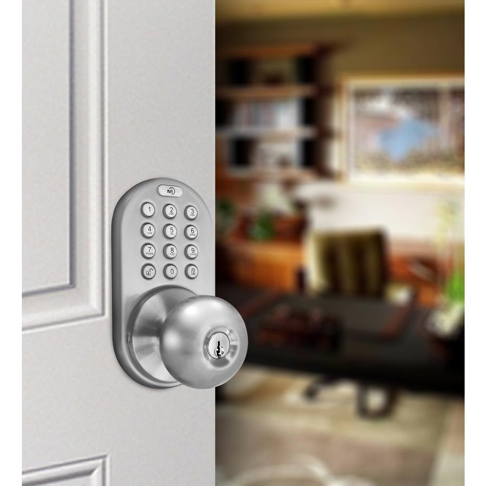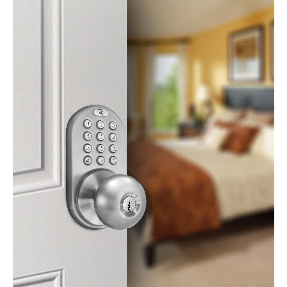 Bring new excitement and convenience to your home with this keypad entry door knob by MiLocks. This keyless entry door knob is recommended for interior doors and installs just as easy on both left handed doors and right handed doors 1-1/4 in. to 1-7/8 in. thick. You will discover how useful it is to simply use a code instead of a key. Places like bedrooms, home offices and supply closets are doors you should be able to lock. Using a code is much more practical than using a key for these type of doors. In addition to adding individual users, you can also program a master code to multiple door locks, a valuable feature for property management. The backlit keypad easily lights up with the push of a button and facilitates operation in the night time. It includes an adjustable latch with 2 different backset settings of 2-3/8 in. and 2-3/4 in. and features audible tones when locking, unlocking and low battery warning. Operates on 4 AA batteries which are not included. This lock carries a 25-year mechanical warranty, 1-year electrical warranty and a limited lifetime warranty on the finish.