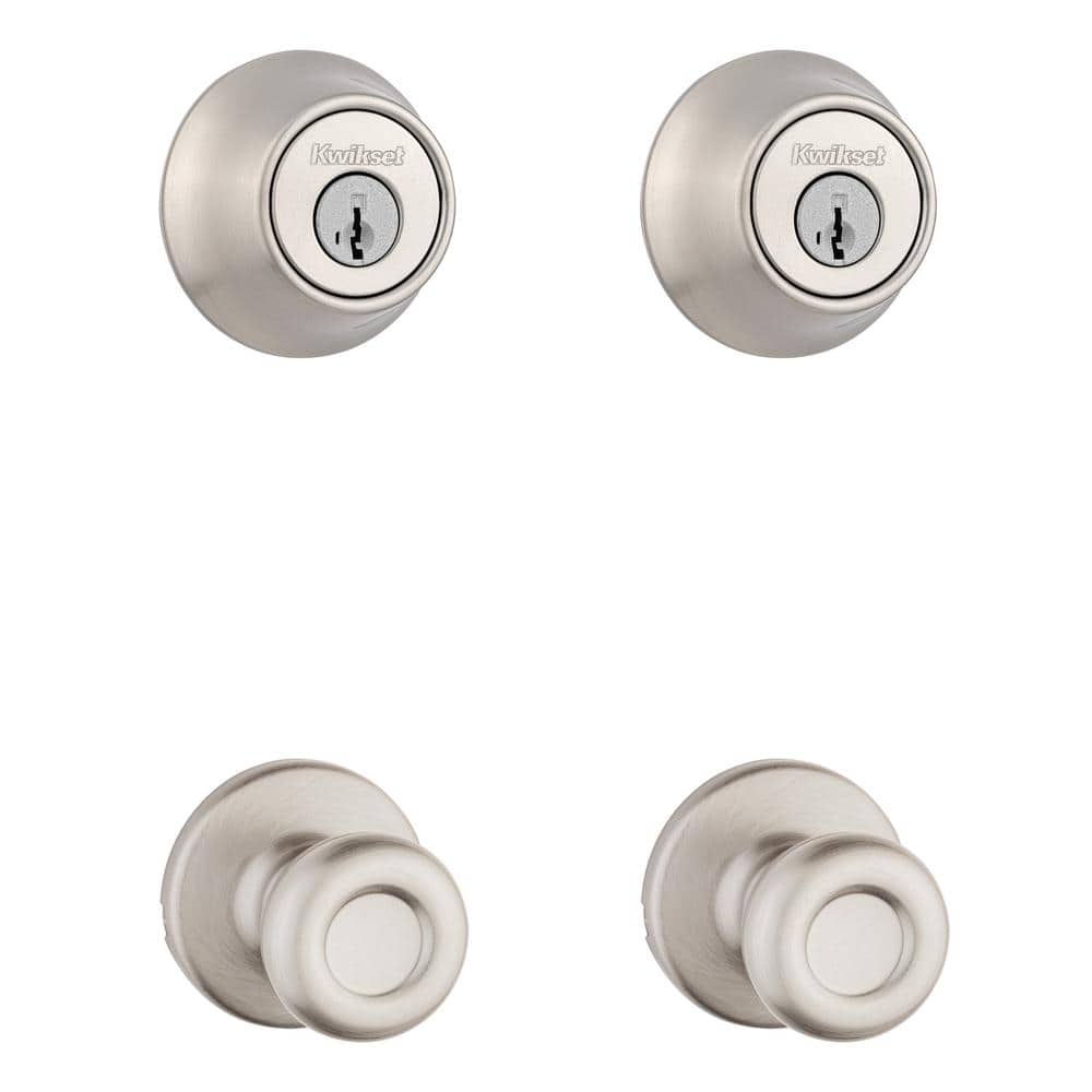 This Kwikset 240 Tylo project pack pairs a classic round hall/closet knob with a single cylinder deadbolt in a durable Satin Nickel finish. Featuring SmartKey Security, it lets you re-key your lock in seconds and installs easily with just a screwdriver—ideal for quick upgrades and dependable home security.
