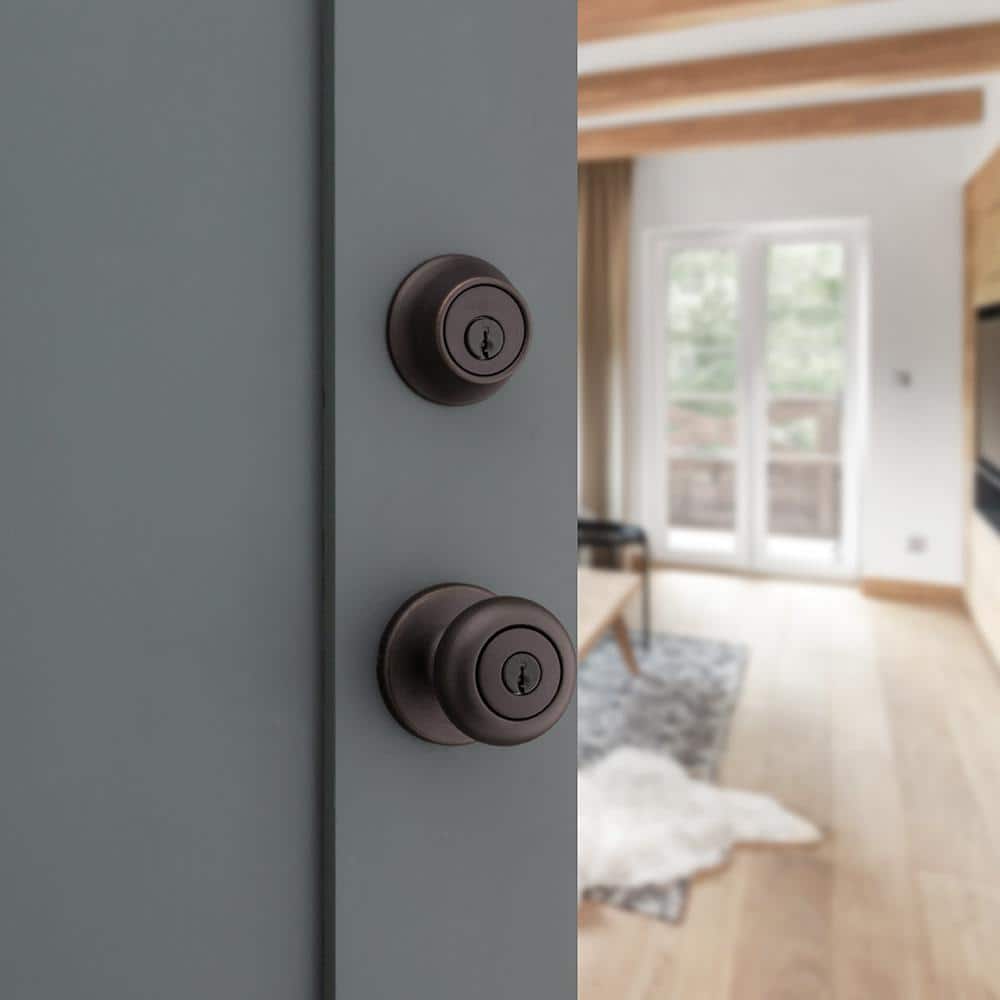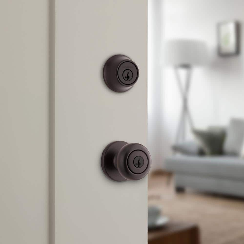 Secure your entry with the Kwikset Cove combo pack featuring a keyed round knob and single-cylinder deadbolt in a rich Venetian Bronze finish. Mechanical reliability meets SmartKey Security for quick DIY re-keying and hassle-free installation on standard doors.