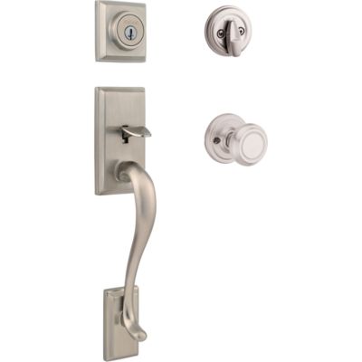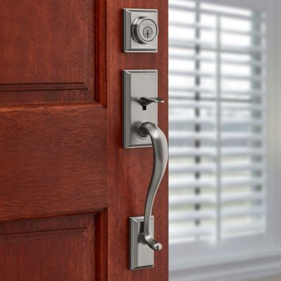 Upgrade your front door with the Kwikset Hawthorne handleset featuring the classic Cameron knob and SmartKey Security. This exterior set offers ANSI/BHMA Grade 1 deadbolt protection, Microban antimicrobial finish, and an adjustable latch for quick, screwdriver-only installation.
