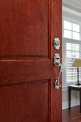 Kwikset Shelburne Antique Brass Single Cylinder Door Handleset with Juno Door Knob Featuring SmartKey Security