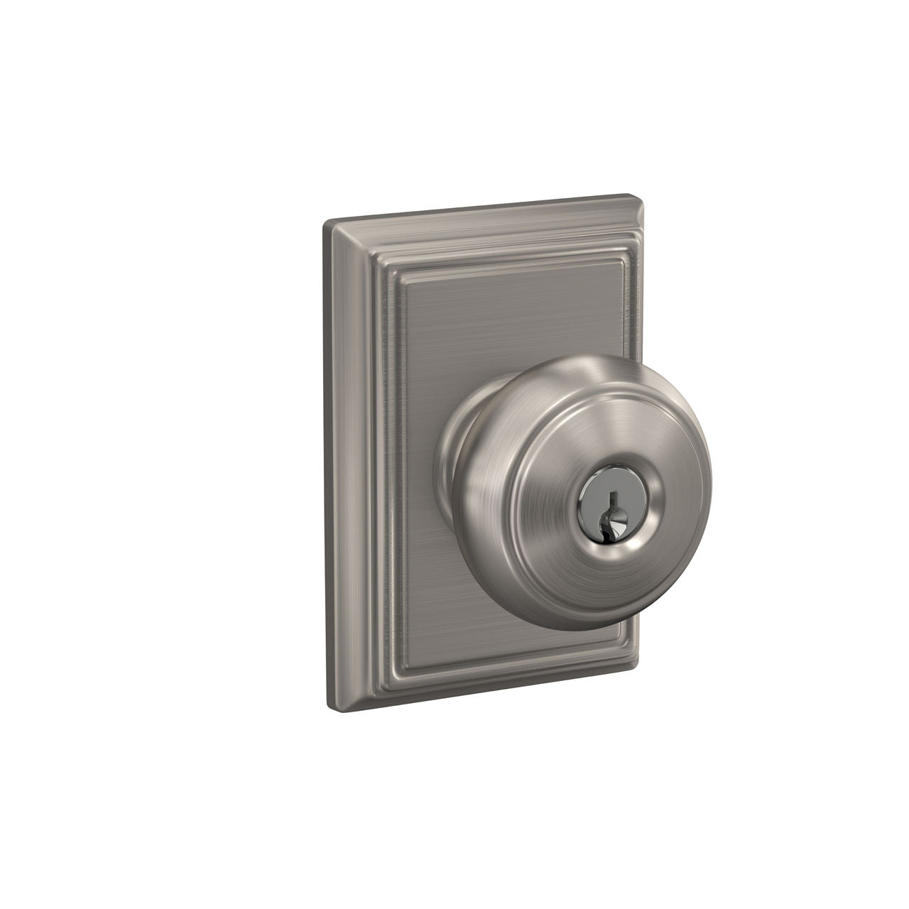 A classic keyed entry door knob crafted by Schlage, the Andover with Addison trim blends traditional styling with robust security. Built from premium metal and certified to top industry standards, it installs easily on standard doors for reliable everyday use.