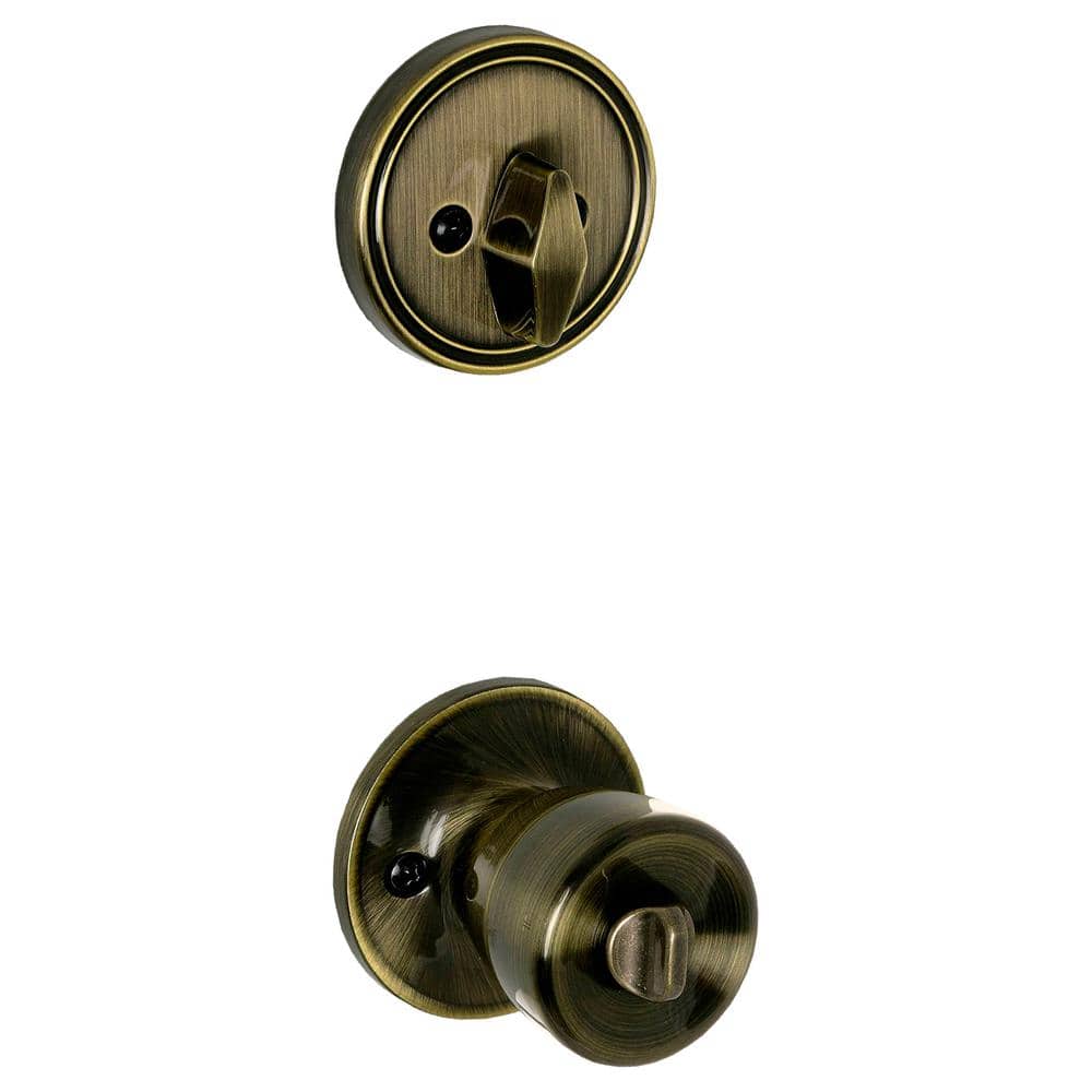 The antique brass finish casts a warm, vintage glow that instantly elevates an entryway. The Brill knob’s classic silhouette pairs beautifully with the clean, confident profile of the deadbolt for a balanced, tailored look. Style it with a dark-painted door and polished house numbers for an elegant welcome. This set is the finishing touch that makes everyday living feel impeccably considered.