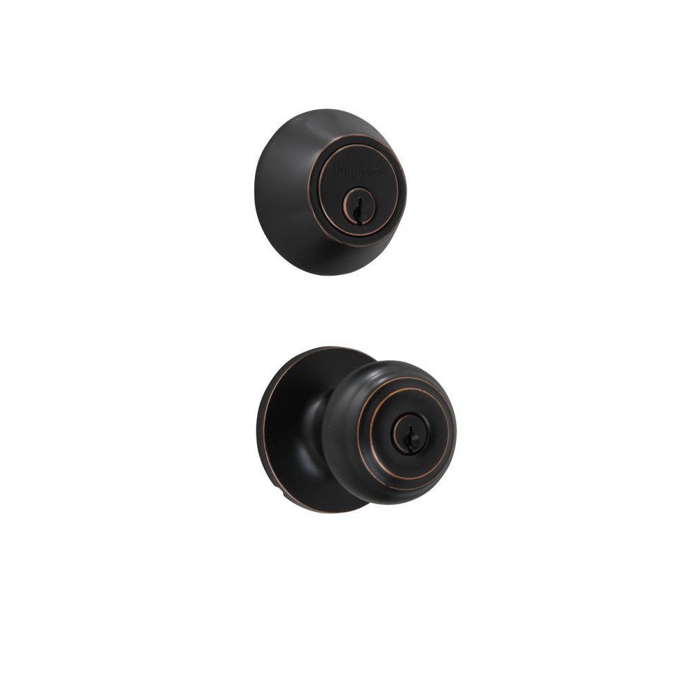Equip your home's entryway with security and confidence with this twin pack of entry knobs and deadbolts from Honeywell. This dual set offers the modern look of satin nickel while giving you the very best in security and durability. Both knobs and deadbolts fit all standard size doors, and all four are keyed alike for your convenience. The Honeywell Classic Knob Home Security Kit in Oil Rubbed Bronze is a specially designed pin and tumbler configuration that provides added protection against unauthorized "bump key" entry. Adjustable latch fits 1-3/8 in. x 1-3/4 in. thick doors and 2-3/8 in. x 2-3/4 in. adjustable backset. Lock can be easily rekeyed by a locksmith. Locks have a Grade-3 Residential Security; tested by ANSI (American National Standards Institute) to meet standards for residential security. Installs easily with a Phillips screwdriver when holes are predrilled into door. Includes an adjustable latch, adjustable backset, mounting hardware, instructions, drilling template and four (4) keys, which the same key opens deadbolt and entry locks. Backed by a Limited Lifetime Warranty.