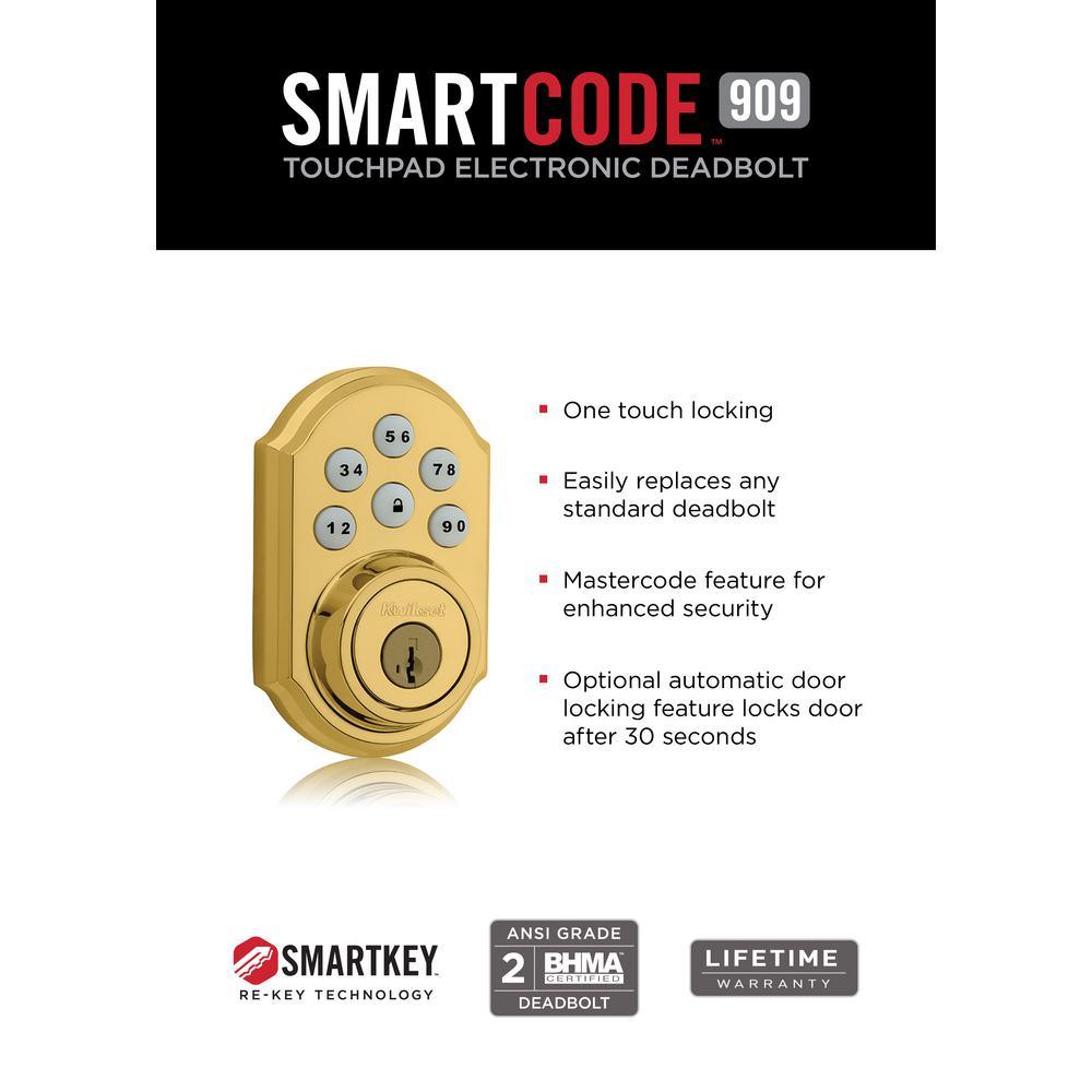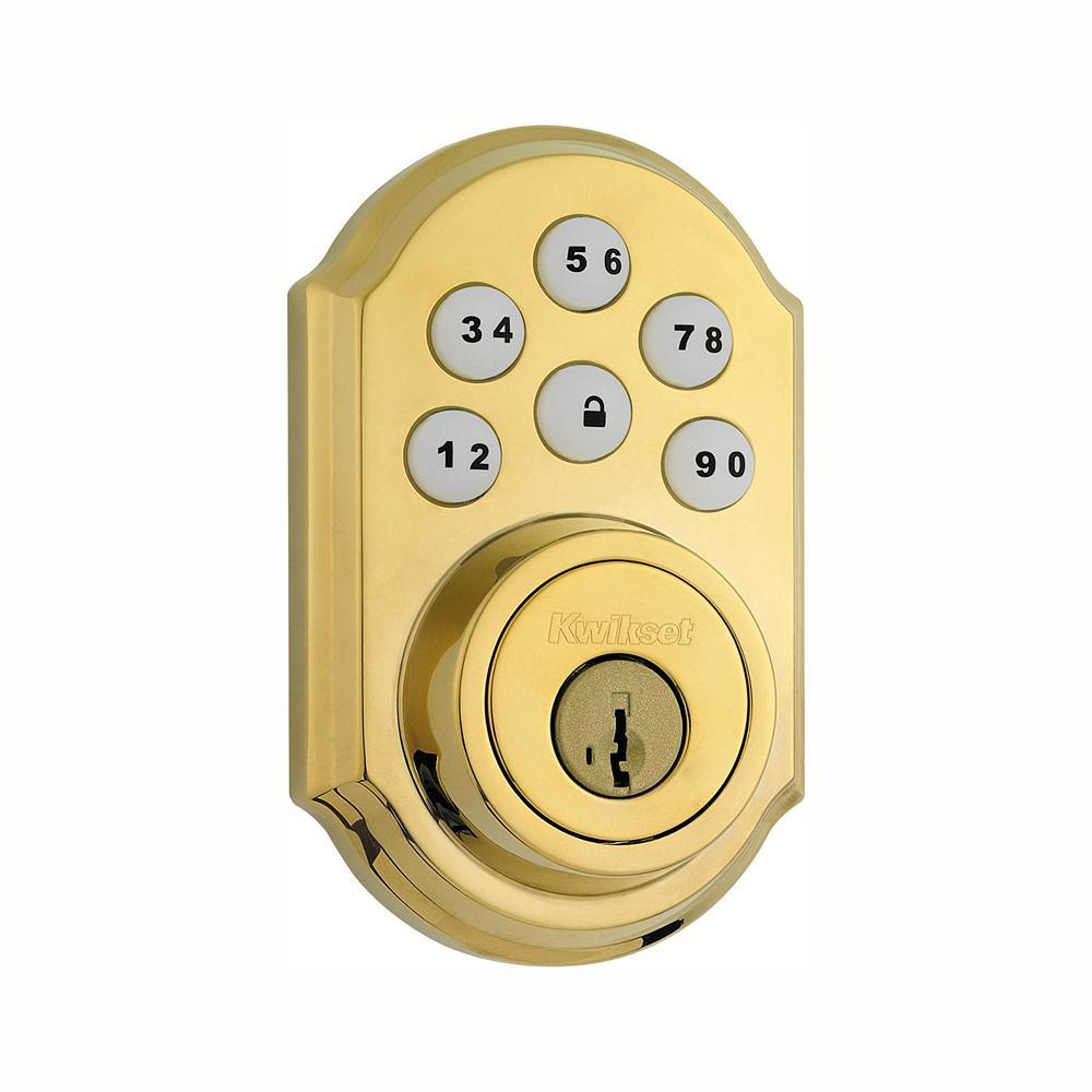 Get personal, keyless access to your home with this SmartCode touchpad smart lock with Home Connect technology. You will be able to choose a personal code to enter on the back-lit keypad to gain entry. The motorized deadbolt is single cylinder and can be used to lock the door with a key or with the keypad. It's also easy to install and operates with four AA batteries. The polished brass finish also adds style to your front door area. The Home Connect technology allows you to wirelessly communicate with other devices in your home and remotely check the door lock status, lock or unlock the door and receive notifications.