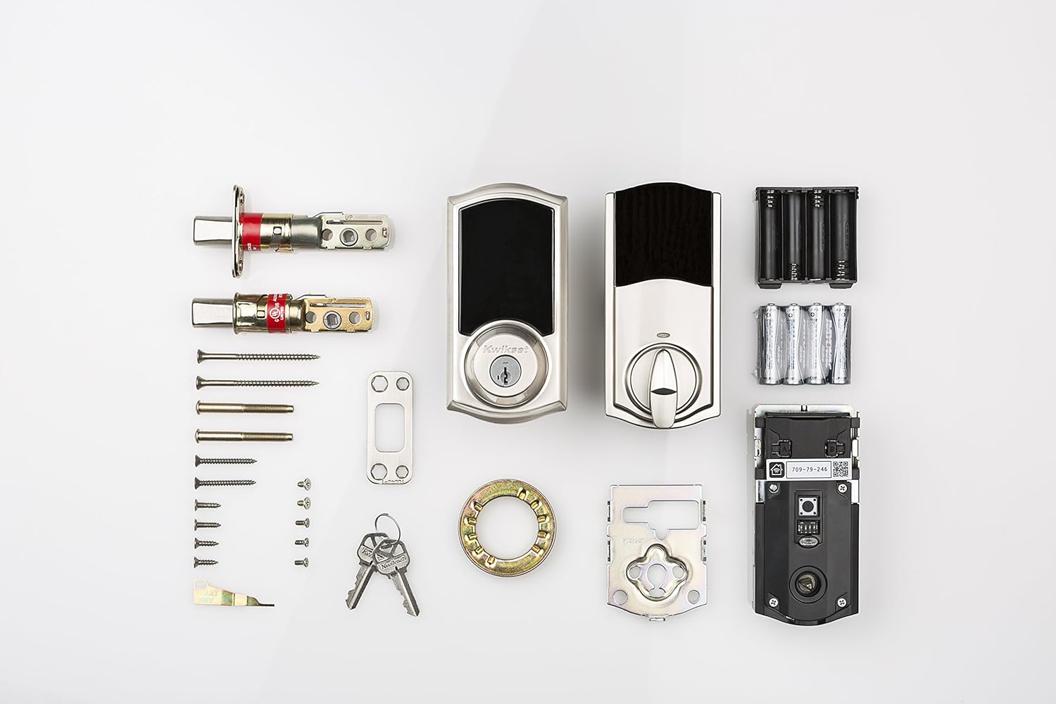- Complete Kit: Exterior/interior deadbolt, latch, strike, 2 keys, batteries (4 AA), and installation guide included