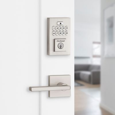 A sleek, keypad electronic deadbolt paired with the modern Halifax lever, offering secure keyless entry plus a keyed backup. Features SmartKey Security for quick DIY re-keying and ANSI/BHMA Grade 2 performance, ideal for exterior doors.