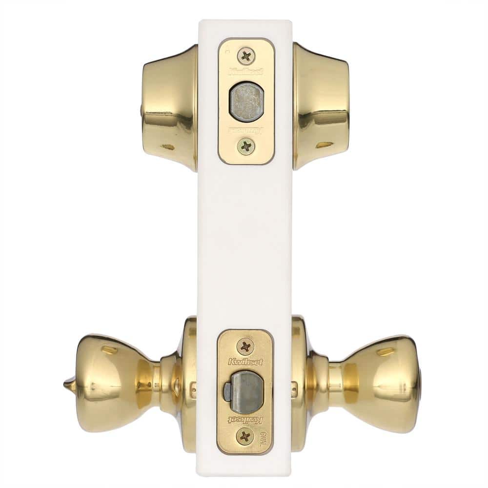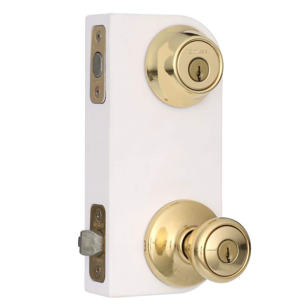 Secure exterior doors with the classic Kwikset Tylo combo pack, pairing a keyed entry knob with a double cylinder deadbolt. The polished brass finish and mechanical design install easily on standard doors, while Microban antimicrobial technology helps keep high-touch surfaces cleaner.