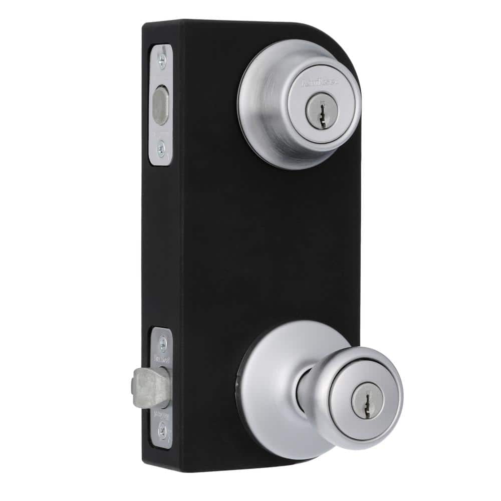 Kwikset Tylo Satin Chrome Exterior Entry Door Knob and Single Cylinder Deadbolt Project Pack