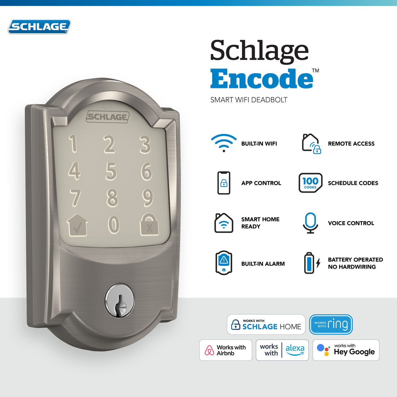 Schlage Camelot Encode Smart WiFi Door Lock with Alarm – Satin Nickel