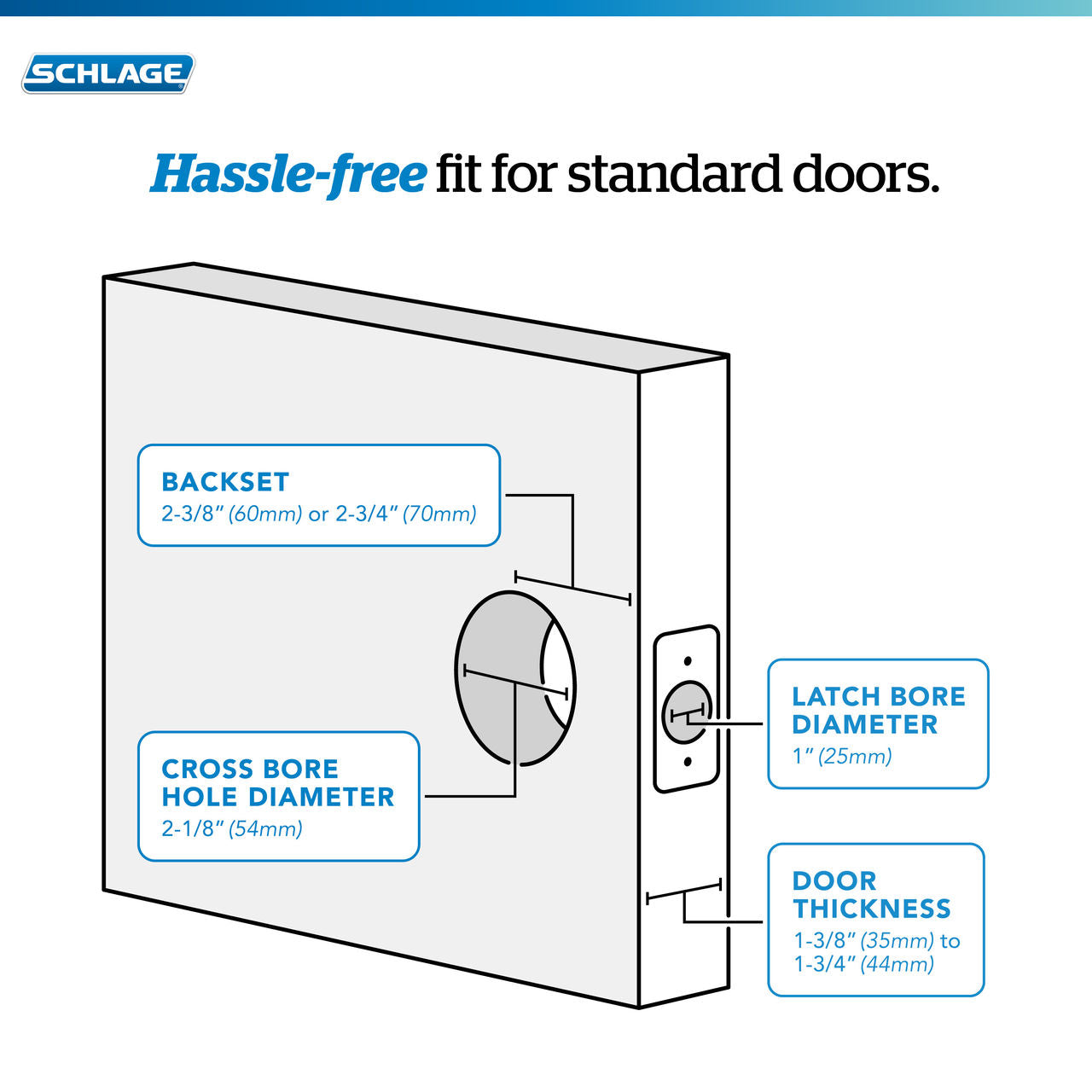 • Easy Installation: Fits standard doors; installs with a screwdriver in minutes with universal 2-3/8 in or 2-3/4 in backset.